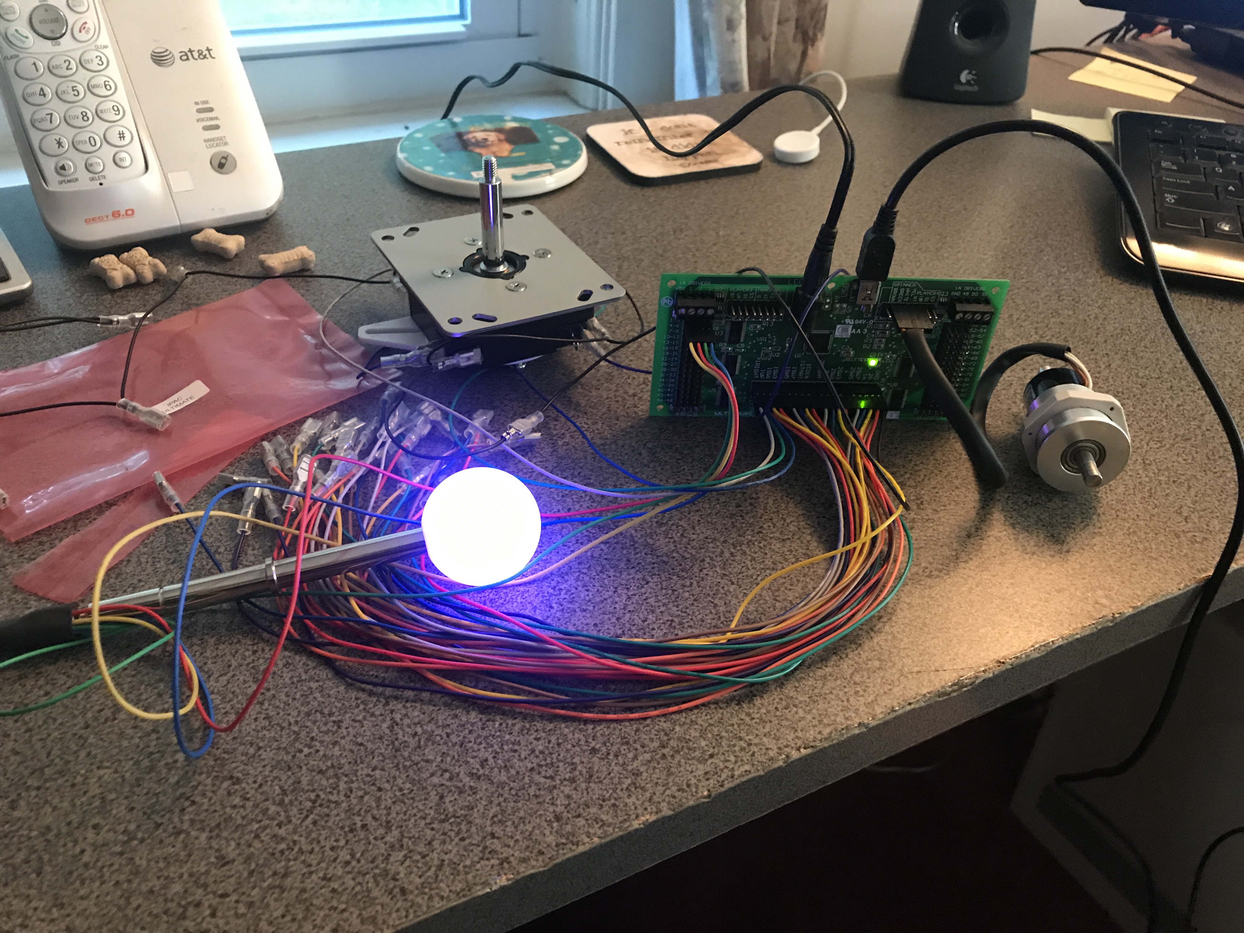My Ultimarc.com order came in – 2 ServoStik joysticks, Ultimate I/O board and a SpinTrak Spinner.  The board is much smaller that it looks on the website..  I’ll have to get posts to mount it to the control panel when the time comes.