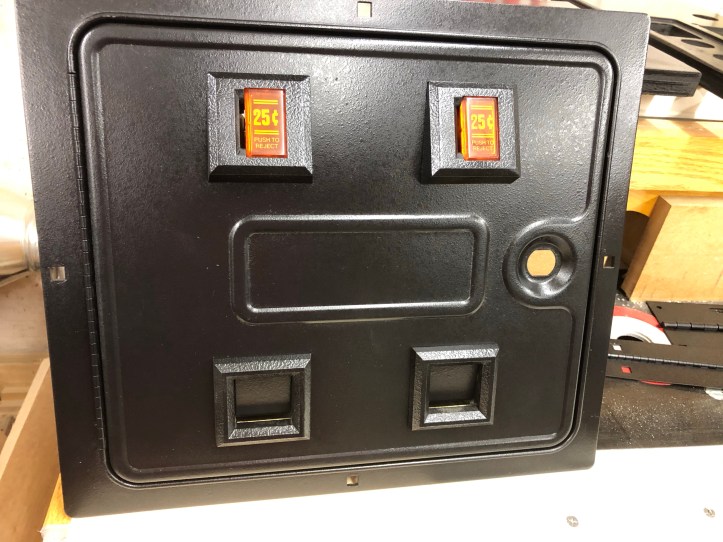 Coin door back together. Looks exacly like a 40 year old door again. Except not all bent and hacked up.
