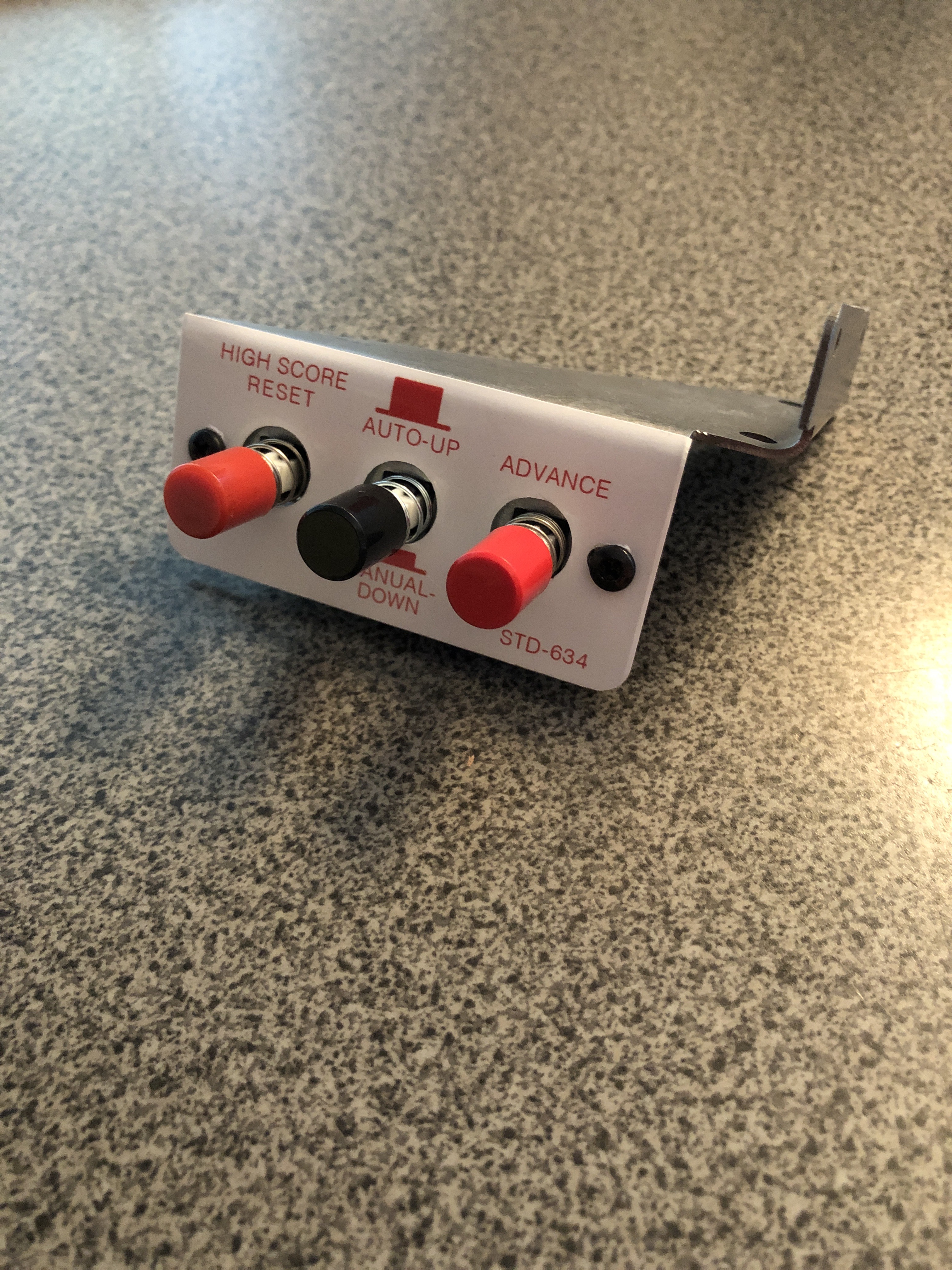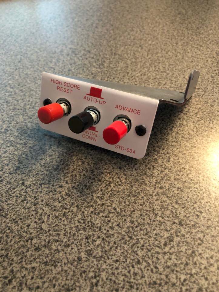 Turns out my Joust is missing the service switches and the bracket. Whoever removed the original also removed the wiring on the coin door including the pins in the Molex connector, so no loose wires as a clue. My Defender has the exact switch / bracket. I looked around and realized there may be a market for these – they are not all that easy to come by. I have 30 brackets showing up in a week or two. Once I figure out how to get the sticker reproduced – I can get the actual replacement service switches and sell a few of these things. It’s going to be a perfect match.