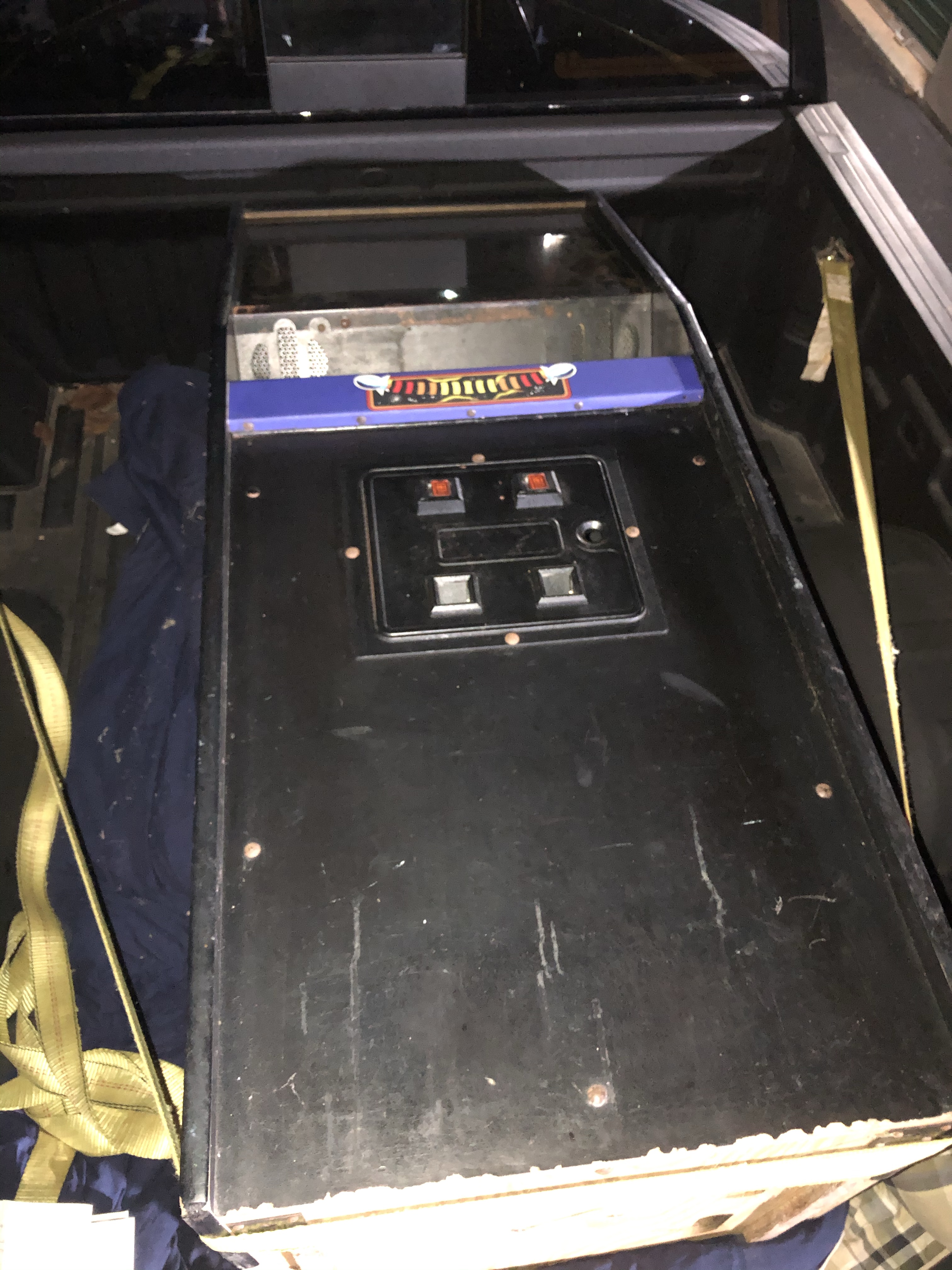 I inexplicably forgot to take a before picture in the shop. This machine is very original. It appears it stopped working at some point and it was just put into storage. The coin counter has 6177 plays on it and the machine was not on free play. The original posting did not have pictures of the inside and the read door lock got drilled so I could confirm it had boards before the 8 hours of driving. Too bad..