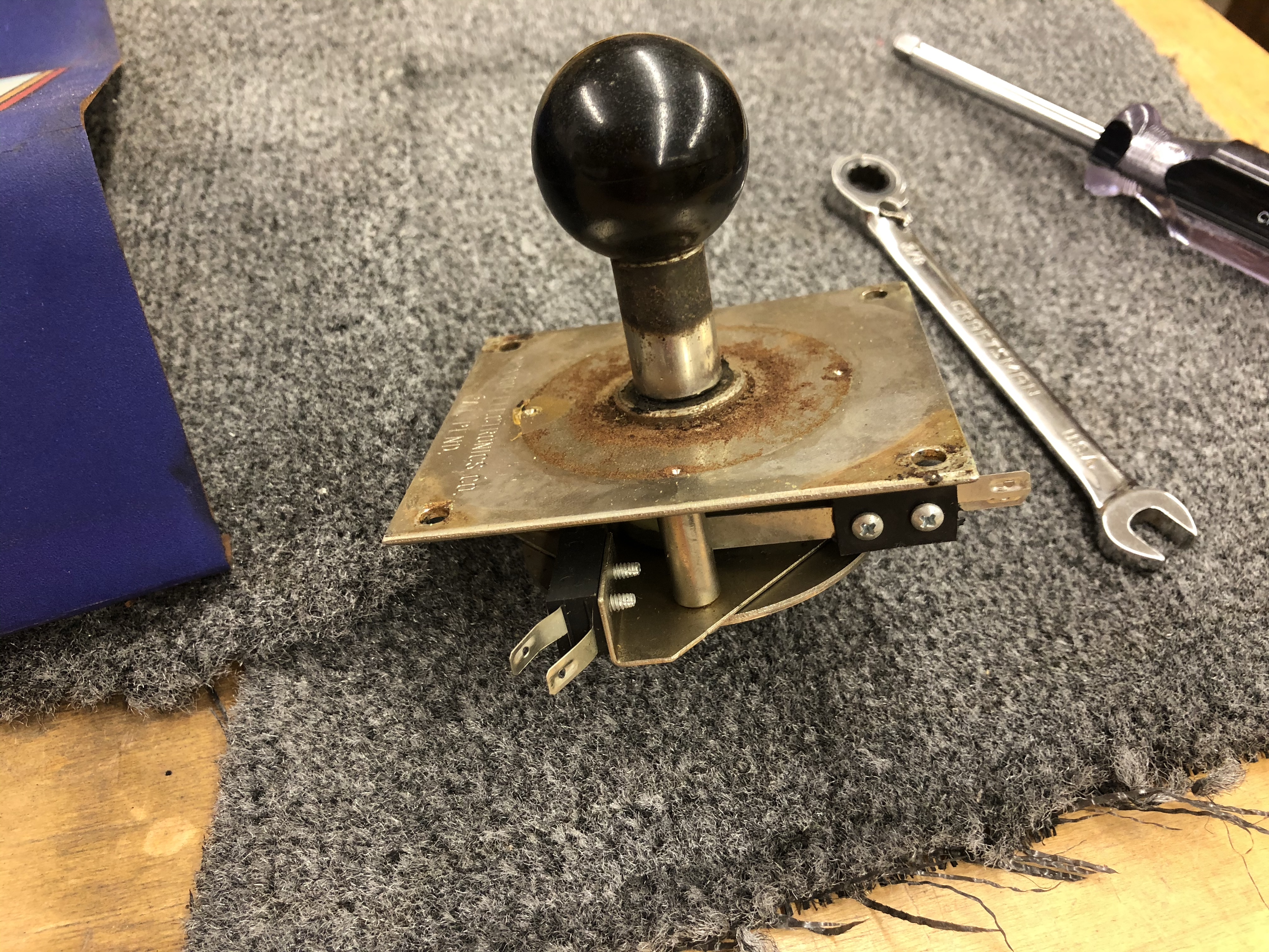 A little cleanup of the bezel, plexi and a few other items and it’s all back together. It took a few tries to get the leaves adjusted on the joystick. The final adjustment that works best was to have the inner leaf just barely touch the white actuator an the outer leaf spaced about ~1/16″ apart.
