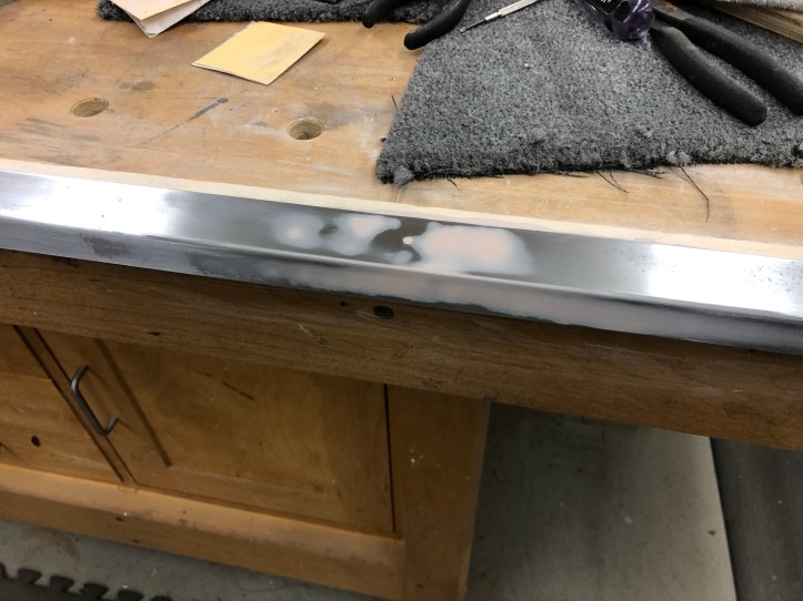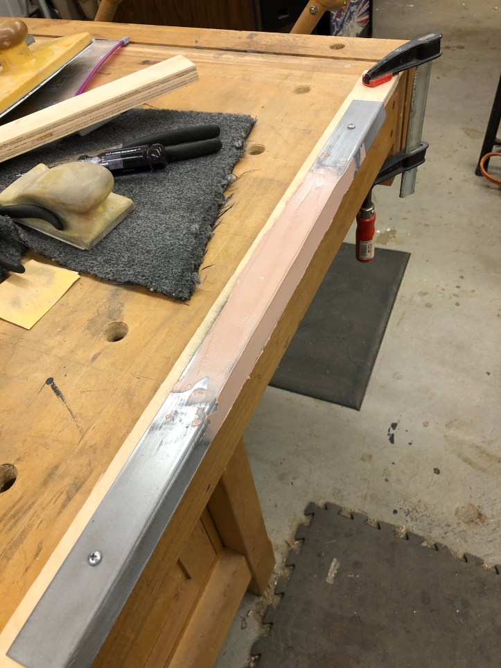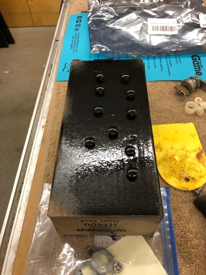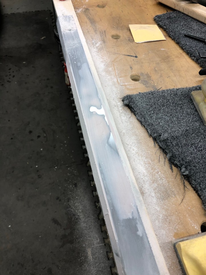 I’ve never been a fan of bondo for wooden cabinet repair (I prefer epoxy) But I do like it for metal work such as this… I went over it twice to get the finish layer smooth sanding with 220g on the final passes.