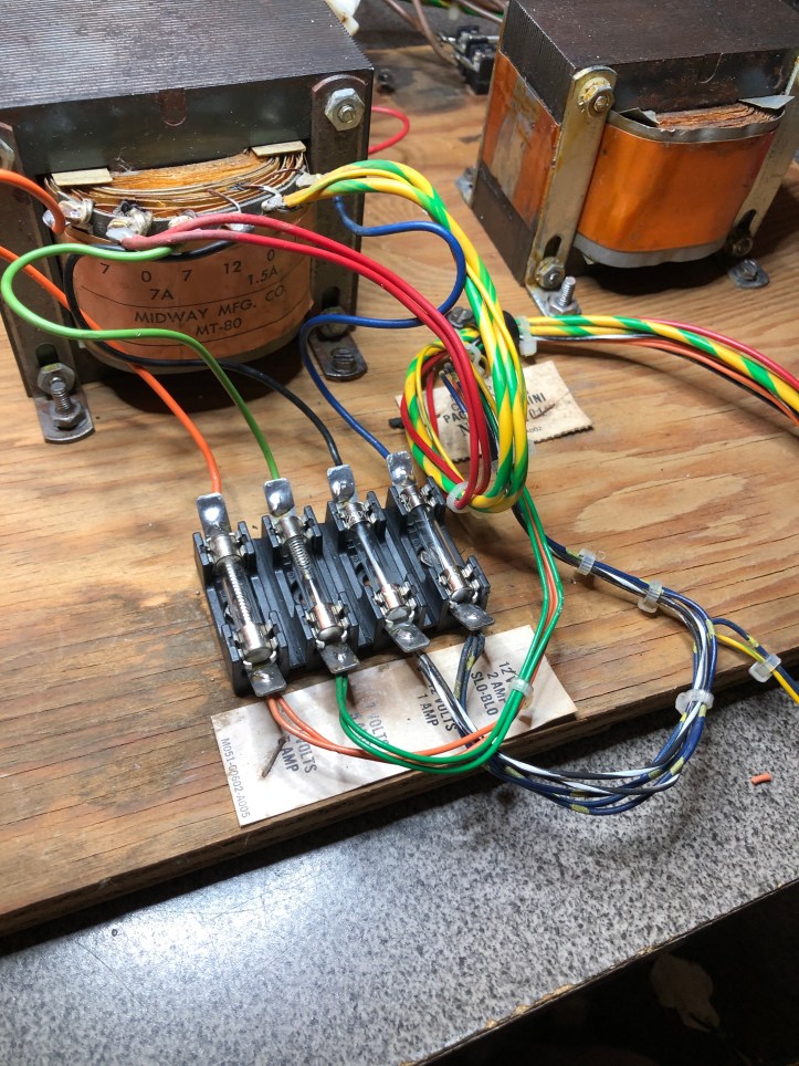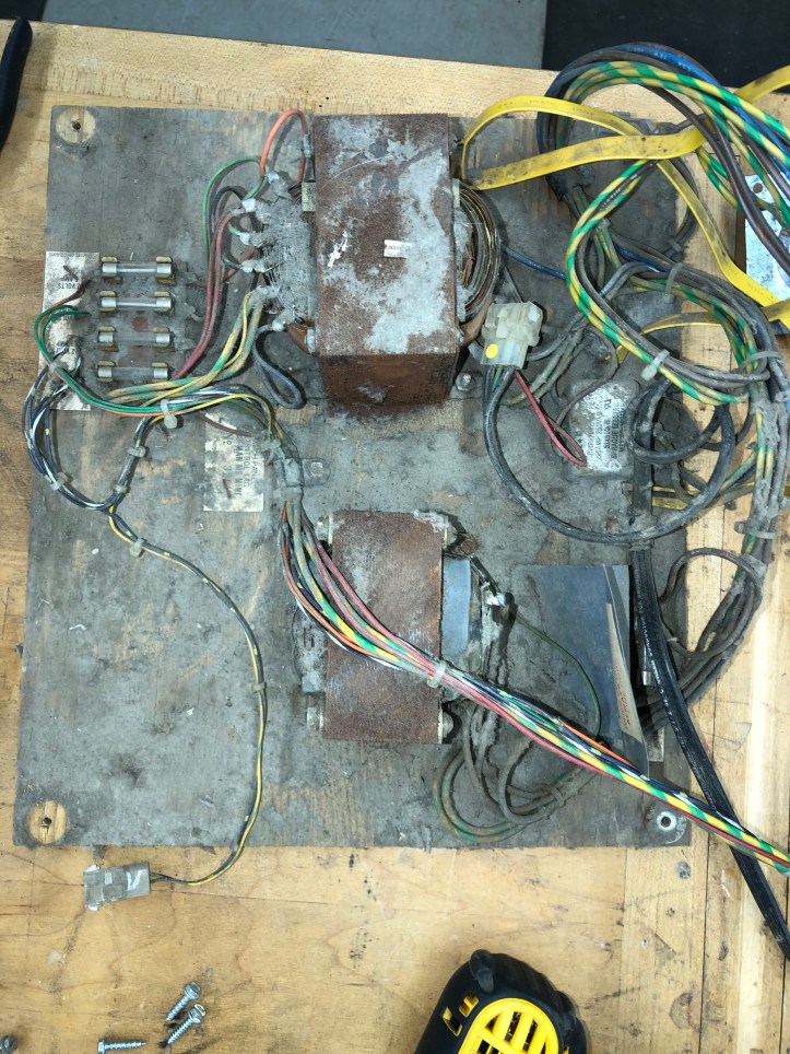 Someone cut all of the power leads and wire nutted them together. This is the first Midway machine I’ve had to dig this far into – Midway used all AMP connectors and pins (vs. Molex) in this cabinet. I picked up edge connector leaf pins and all of the AMP .084 male, female pins for the quick connectors.
