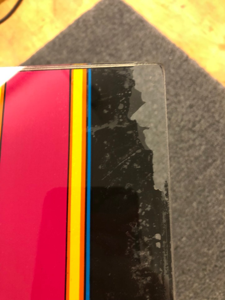The overlay is in really good shape. I’m guessing its original – but a little Miracle Eraser and cleaner and it looks like new. This here is just a cleaning of a small area of the front.