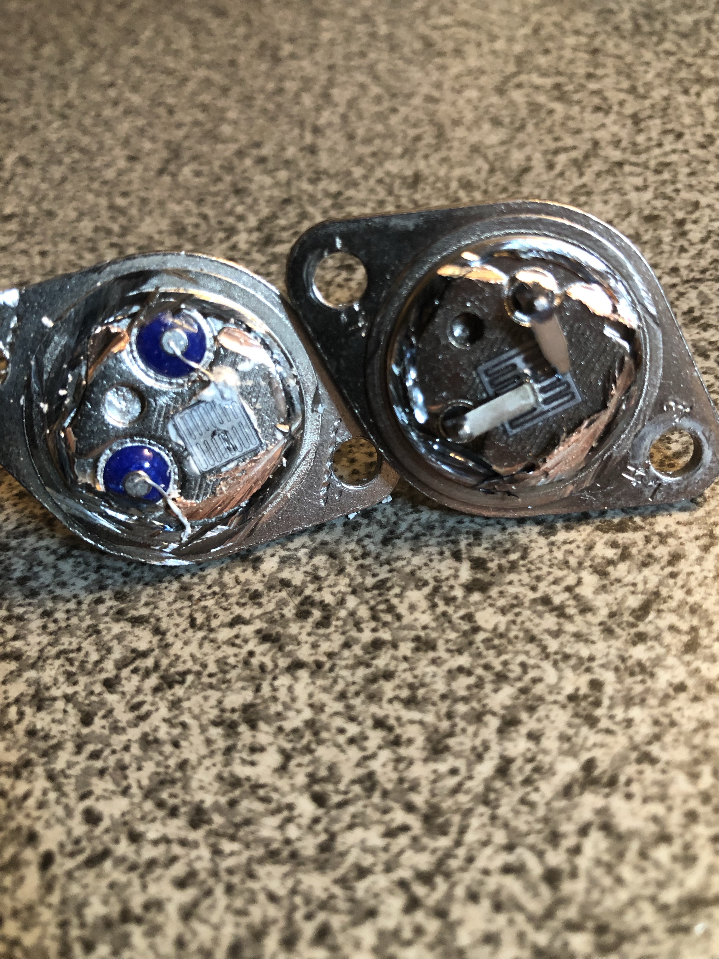 New on the left and original on the right. In hindsight, I do not think they are cheap knockoffs. Just modern manufacturing techniques.. But it was fun to cut it open and look. I did go to the Bitronix Star Trek Site and spent some time reviewing recommendations. Second time around I went with MJ21196G power transistors just to be sure. I now have plenty of extras of both types that I hope I never need.