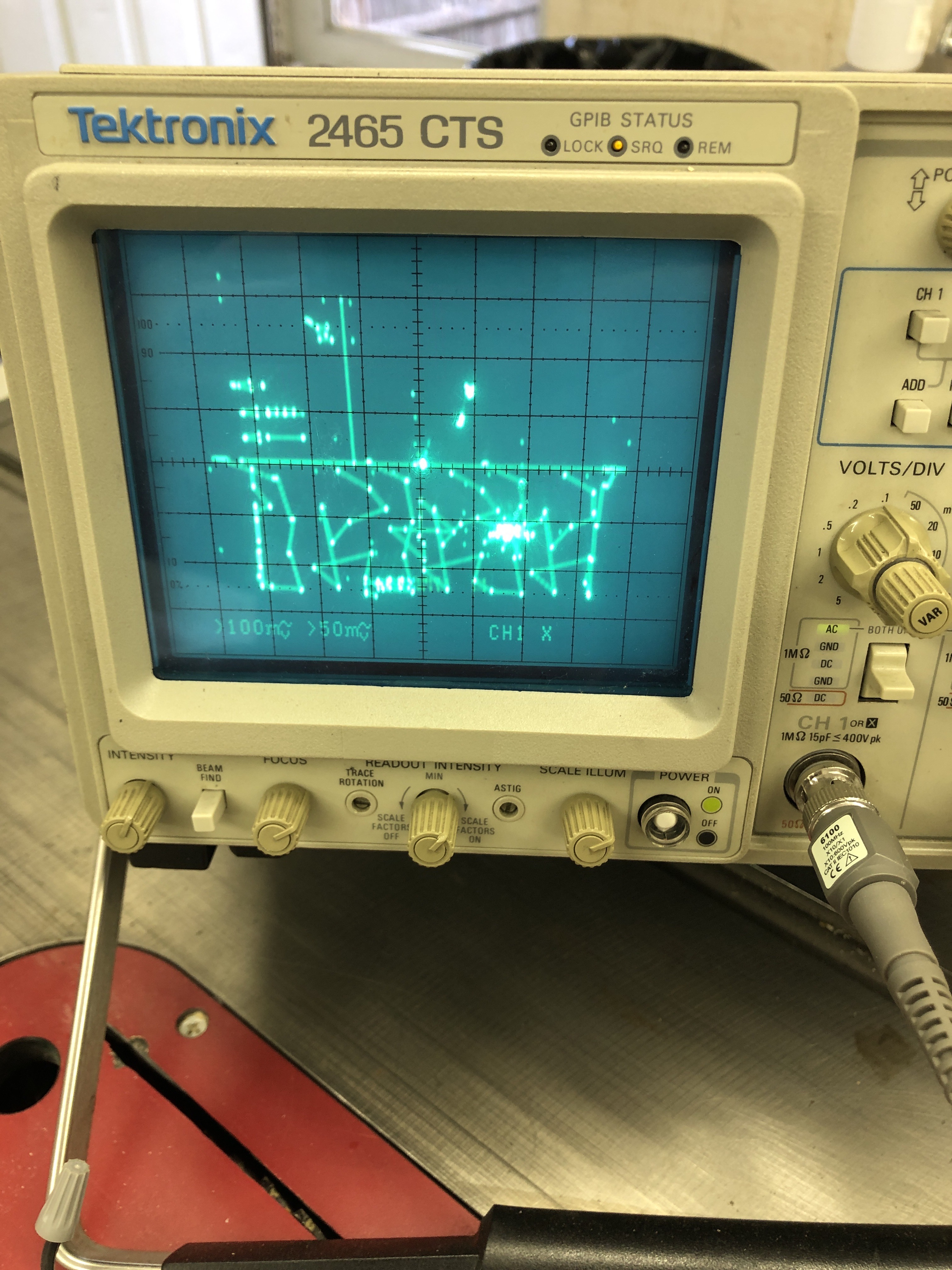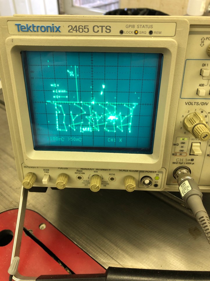 The next part I’ll take some responsibility. While trying to get the DVG to work – I was stepping through the menus and somehow created the equivalent of a bad X,Y board. I just started to hear the deflection overdriving as I changed settings buttons and then Boom. It was too late..