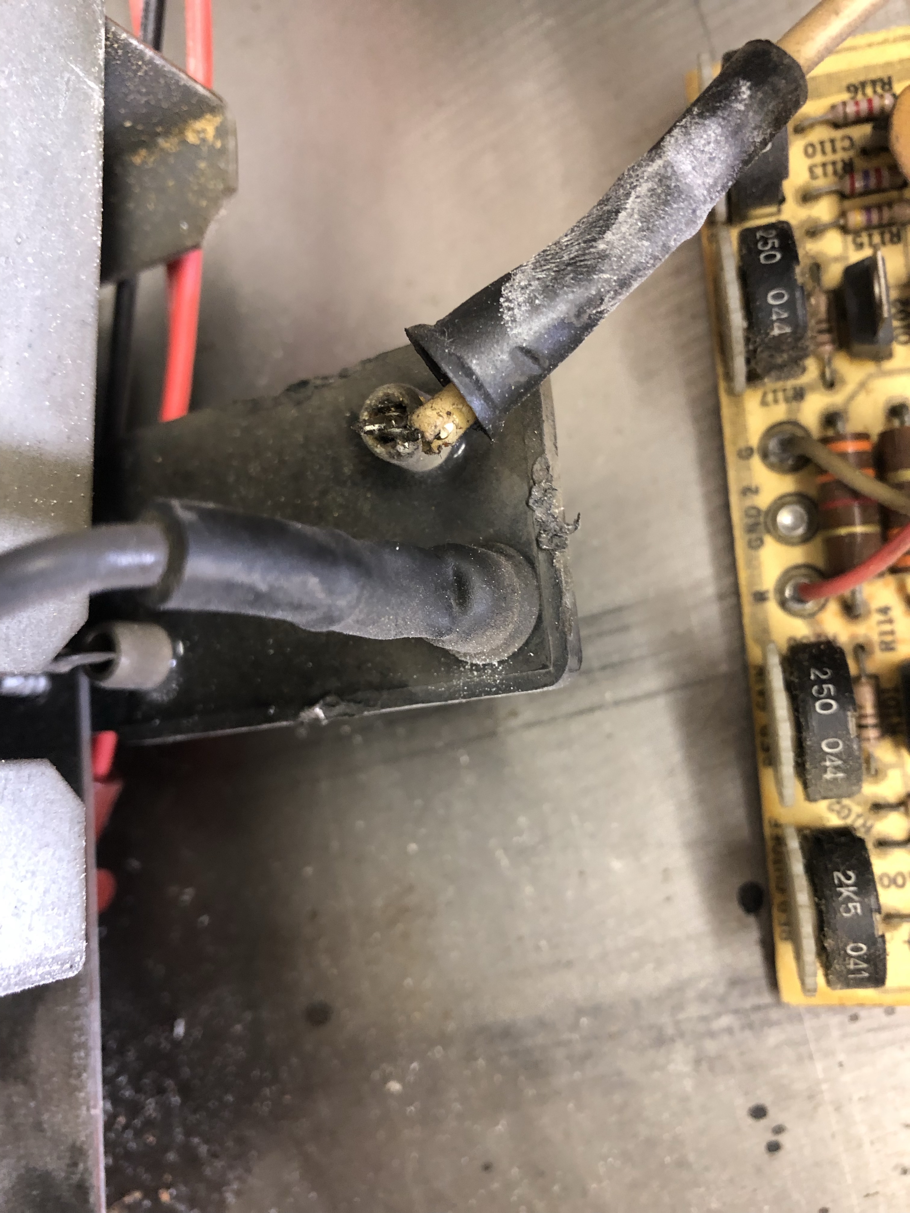 I had planned on maintenance work. So while I wasn’t happy about it blowing up, it wasn’t the end of the world. I found the focus wire hanging by a couple of strands and it was very short in length.. Lucky I had a couple donor TV’s available.. the second tv I opened had the perfect 20KV replacement wire.