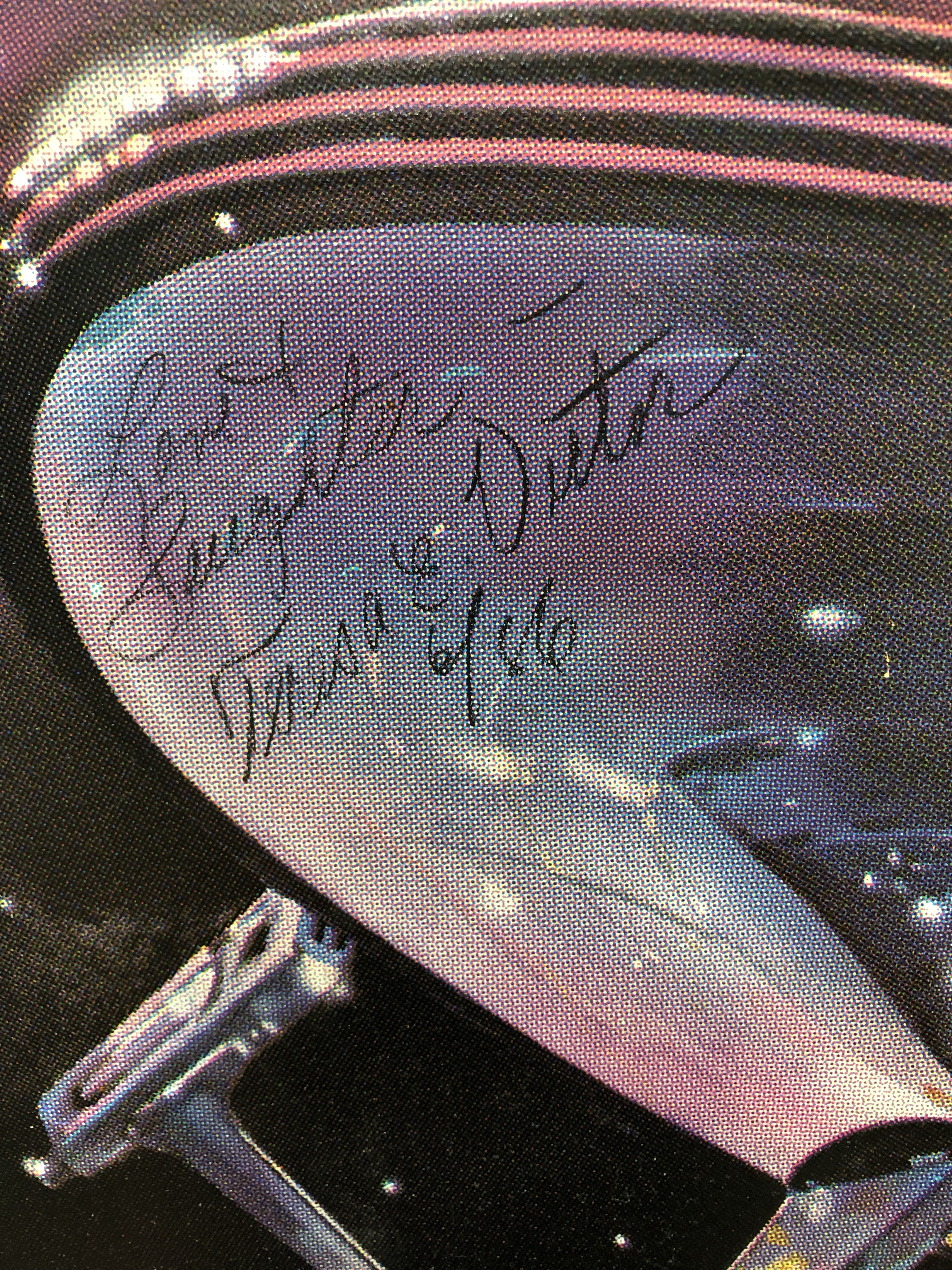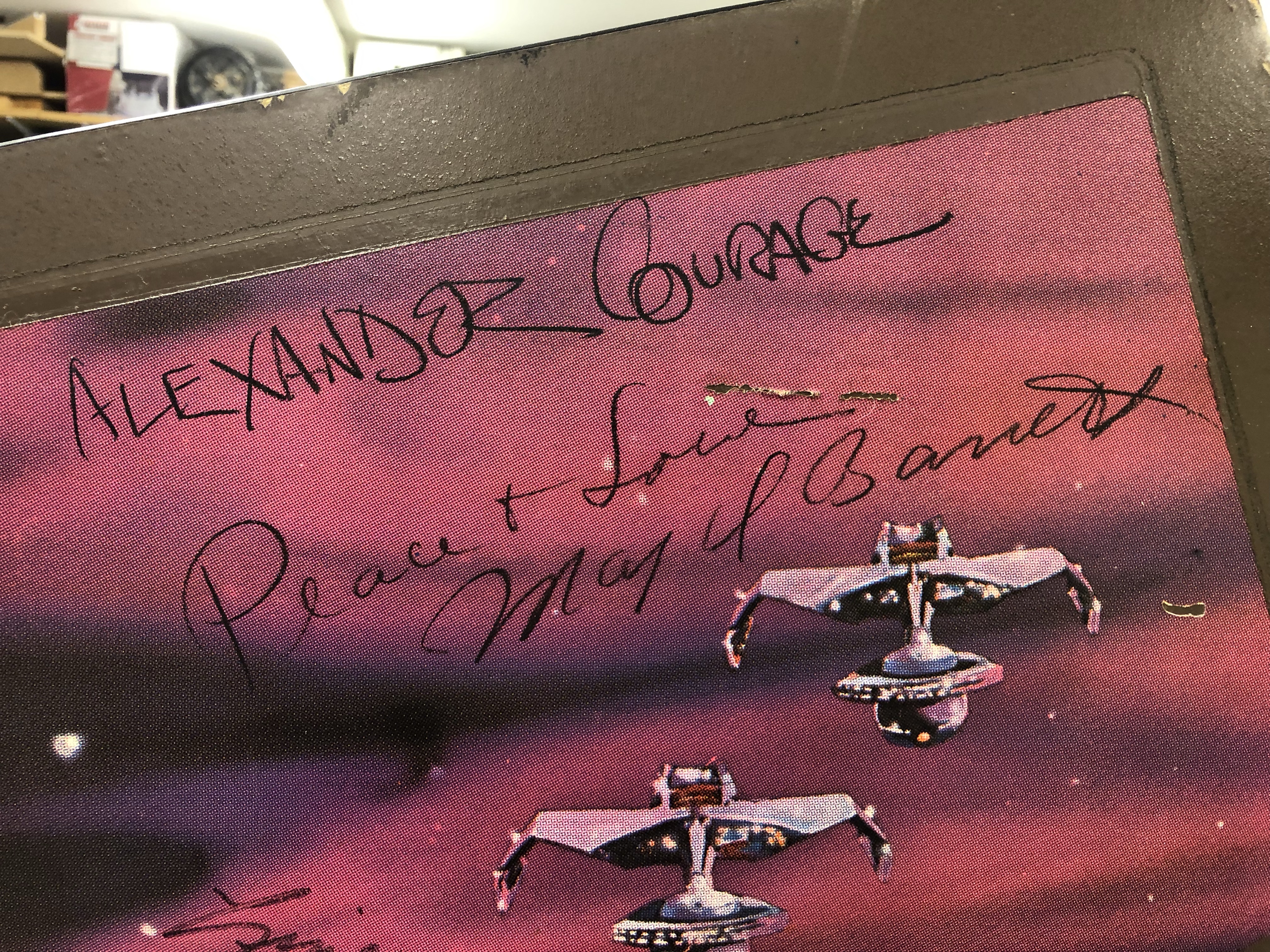 This particular Star Trek S.O.S. has history beyond most and it’s why preservation was really important to me. It was part of the 1986 Star Trek Convention in Anaheim California on June 21st, 1986. Below are pics of autographs on the side art. The convention was a little before the release of Star Trek IV: The Voyage Home (November 26, 1986).