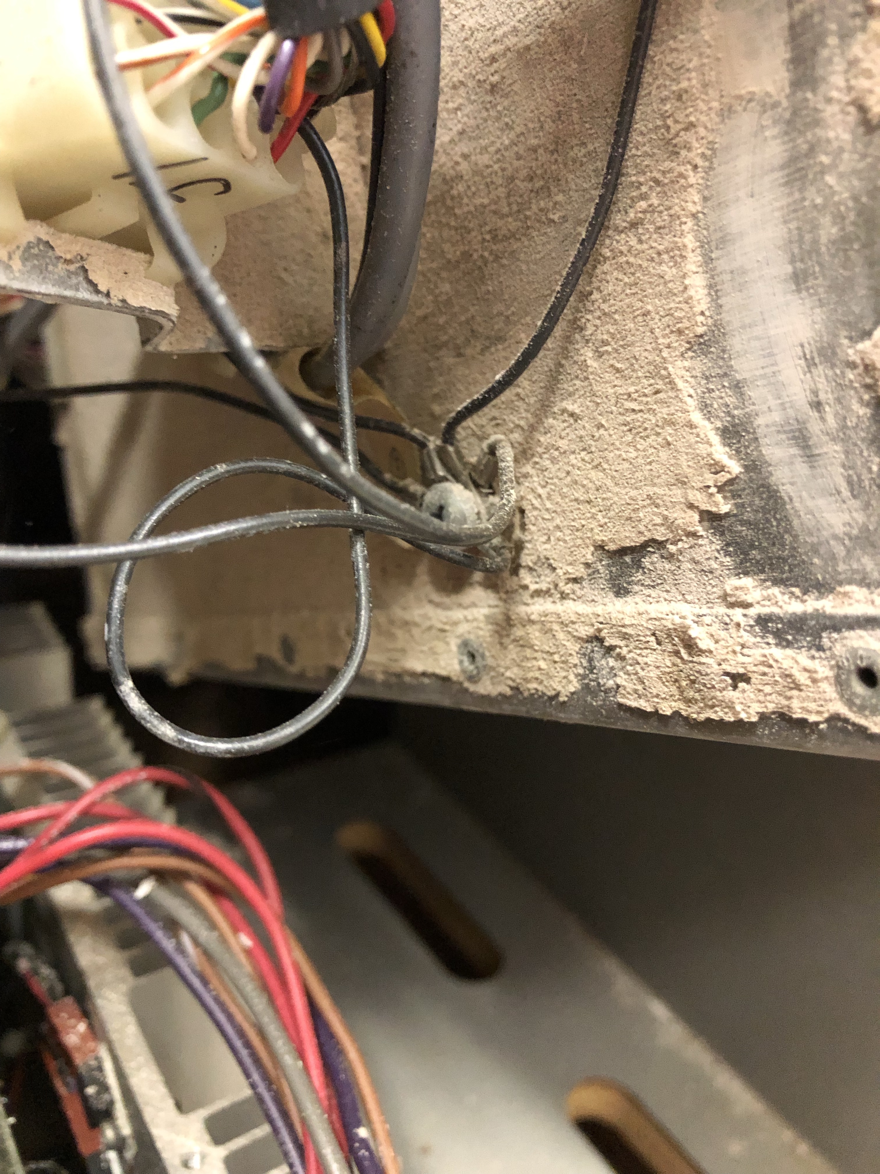 The coin door is a mess – it was hacked and re-hacked. When it was operated, they put a standard wall switch on the top.. ugh.. But the difficult one to understand is it was somehow hit where the left side has a big crack and the right side has separated as a result.