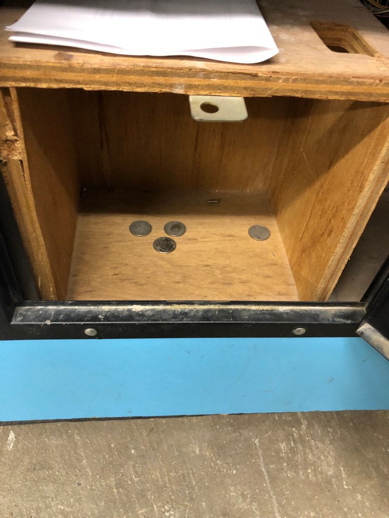 Something I really do not like – smashed up coin doors. You won’t be able to tell it’s been restored when I get done with it. It’s getting a second coin mech too..