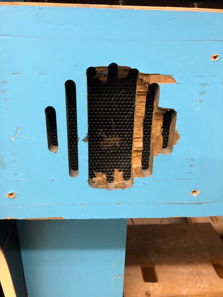 The original speaker grill is smashed up. Framing nails everywhere that ruined the sides and the front parts of the cab. I did get some cash back on it however!