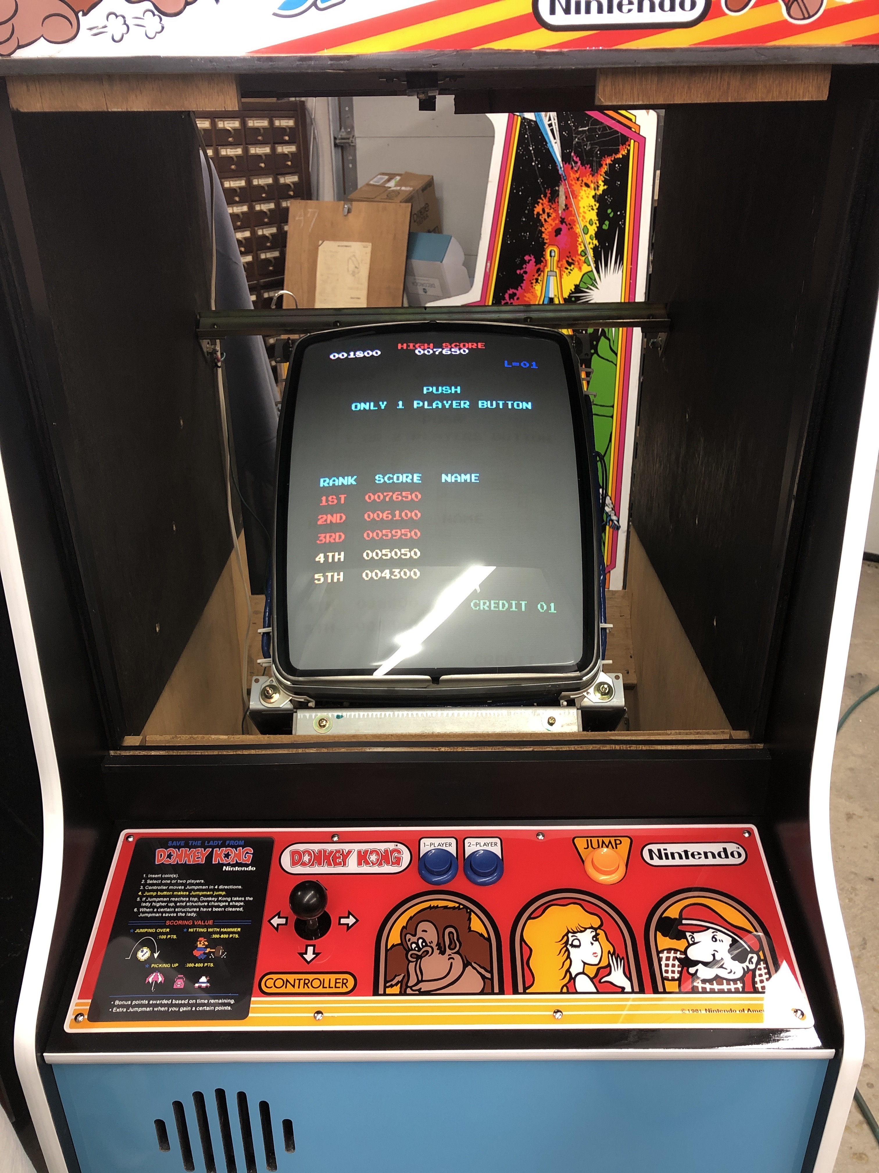 Putting it all back together went pretty smooth. Thumping of Kong brings out a few rattles in the cab. One that was a loud buzzing sound was driving me crazy.. I finally found it. The crystal on the video board was buzzing inside its little wire holder against the PCB. Not the first place I would have looked. There are a couple more bass induced rattles to find still.