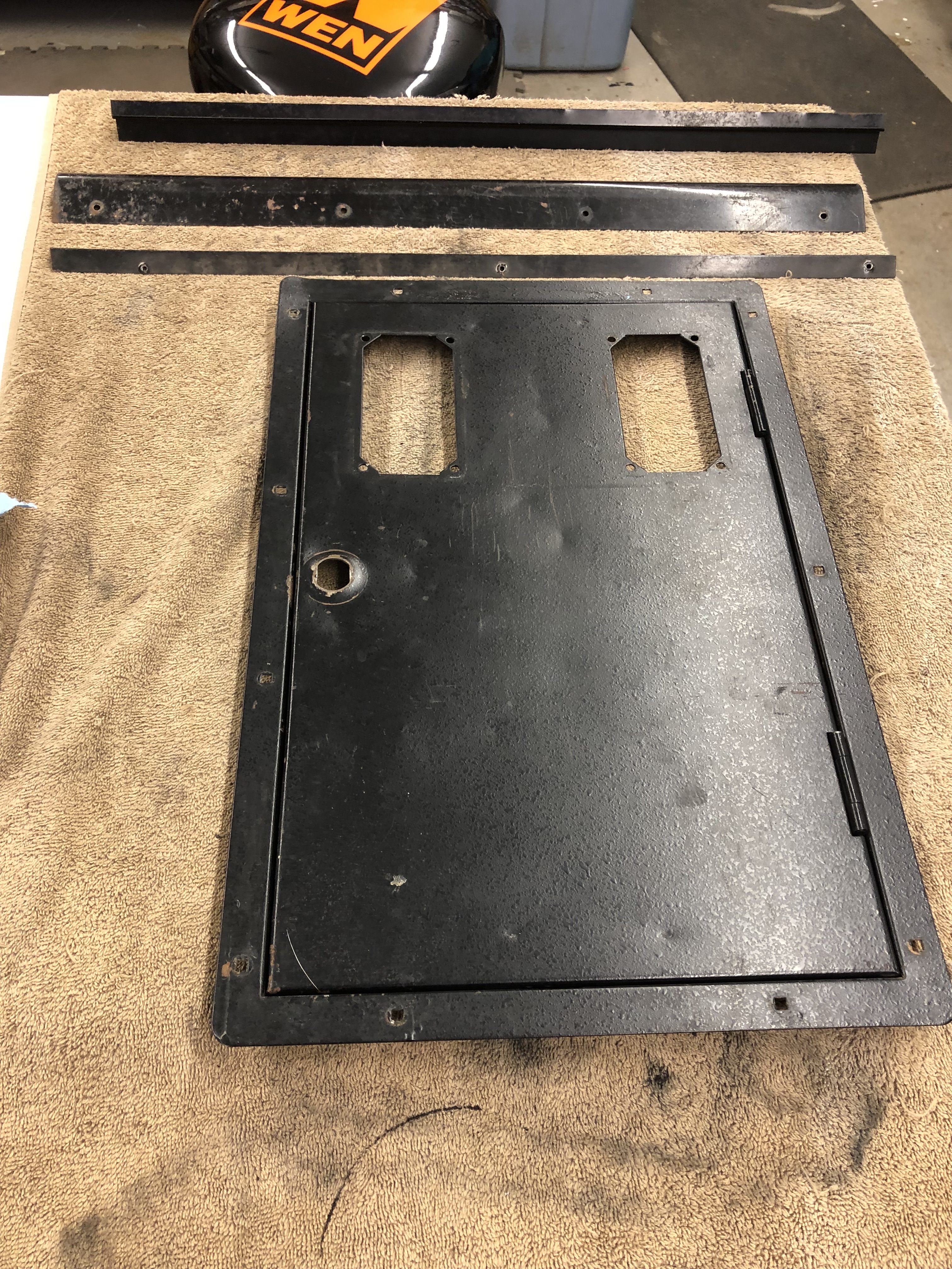 The painted metal parts were dinged and rusty and I really do not like smashed up coin doors. I’ve had great success making ruined coin doors look original again.