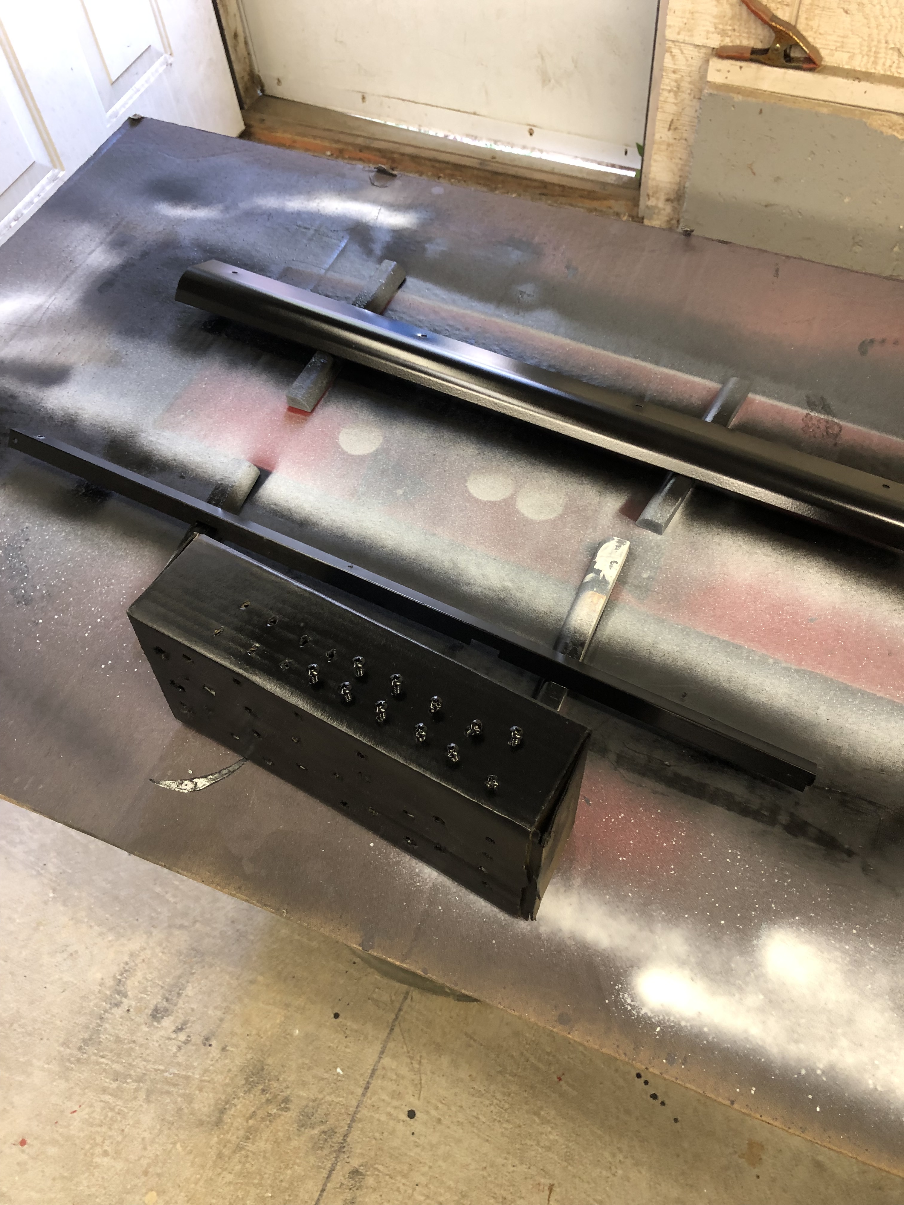 The oscillating sander can get tight into the corners along a straight line. Very handy and quick. Everything gets hand sanded to 220/320 before the paint goes on.. the marquee brackets sanded up clean and got painted with semi-gloss. A fresh set of screws got some black paint.
