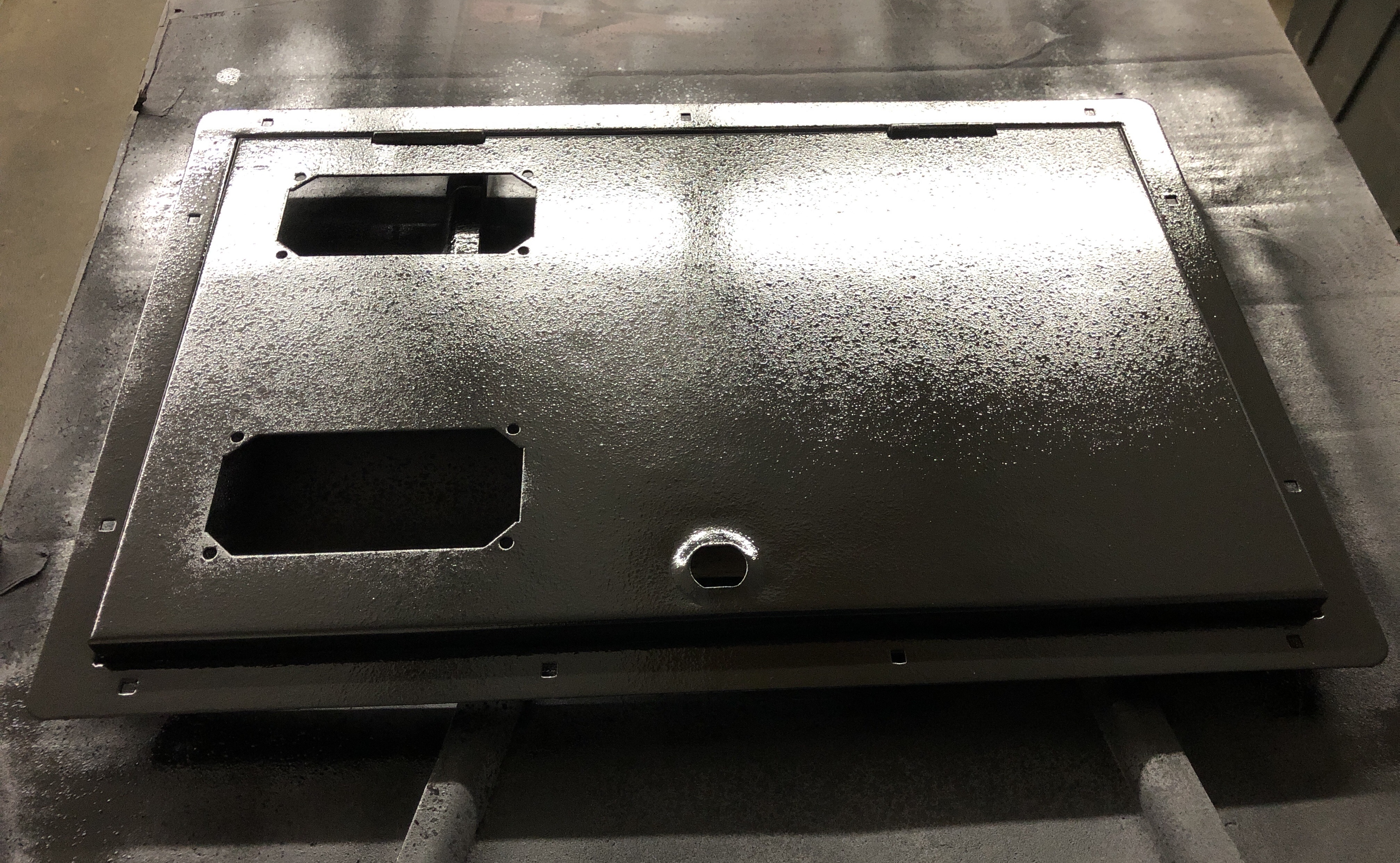 Post sandblasting.. the paint they used on the door is the toughest stuff I’ve run into on a coin door. Normally I can get it down to bare metal similar to the marquee brackets. After cutting through the glaze of the paint (powder coat?) I sanded the door down to bare metal, but even that took a while. I had to use 60G carbide paper for the majority of it before I could sand with the normal stuff.