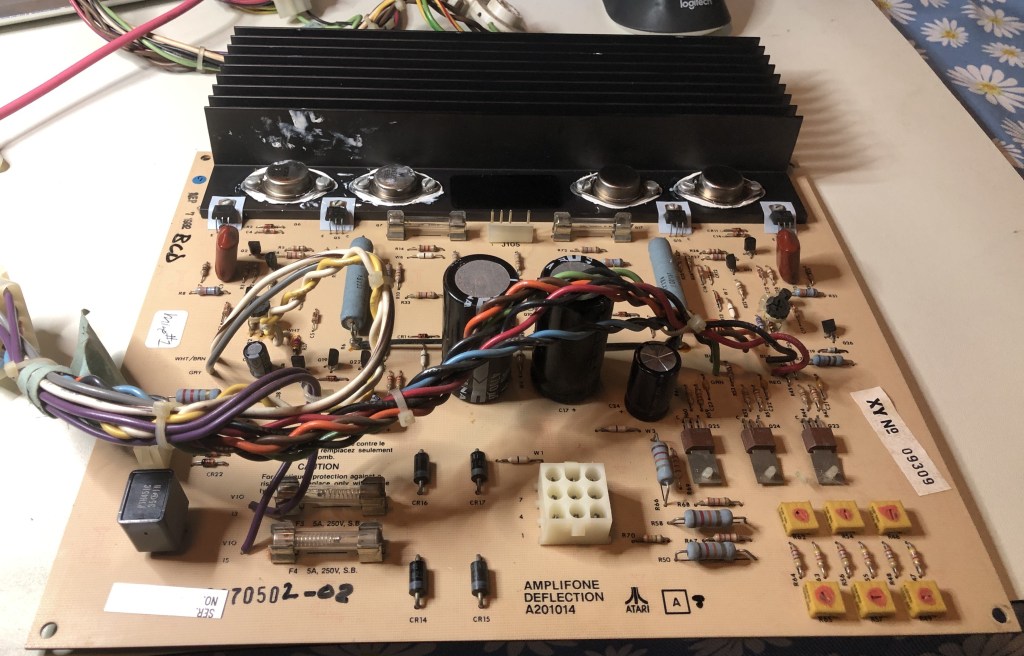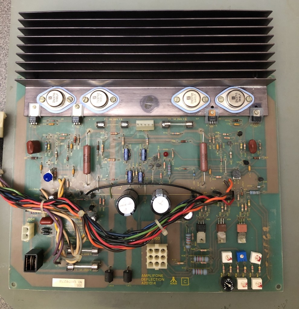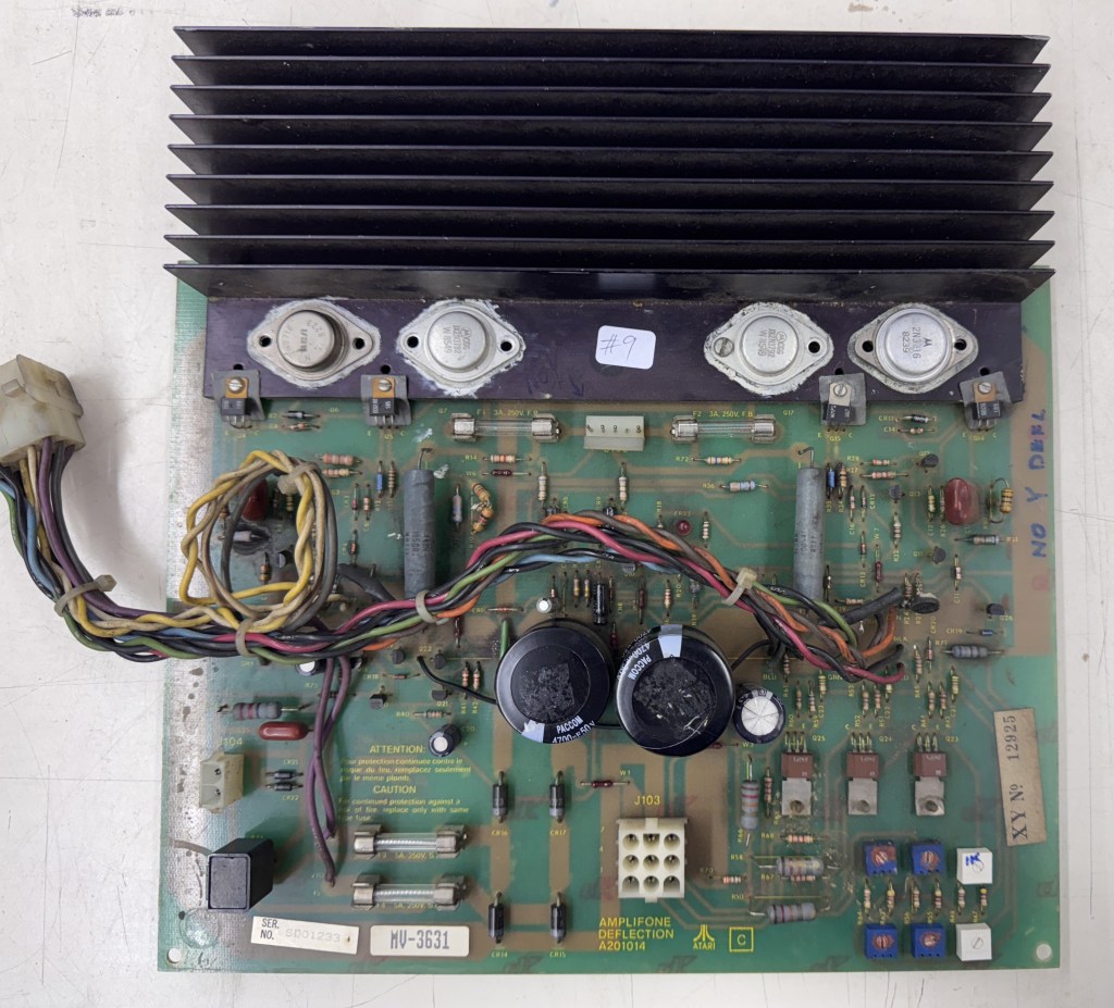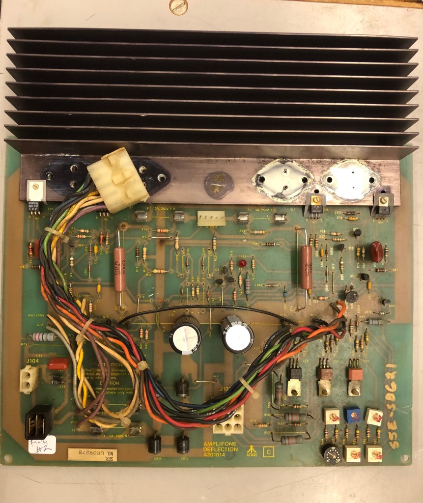 This one came with Star Wars boards, an ARII and the Amplifone. Star Wars was down. Labels showed it had been worked on in 2023. The ARII had serious issues. It was putting out 7V (got that repaired). The Star Wars PCB set was fine thankfully. The Amplifone deflection board worked, but the HV did not.