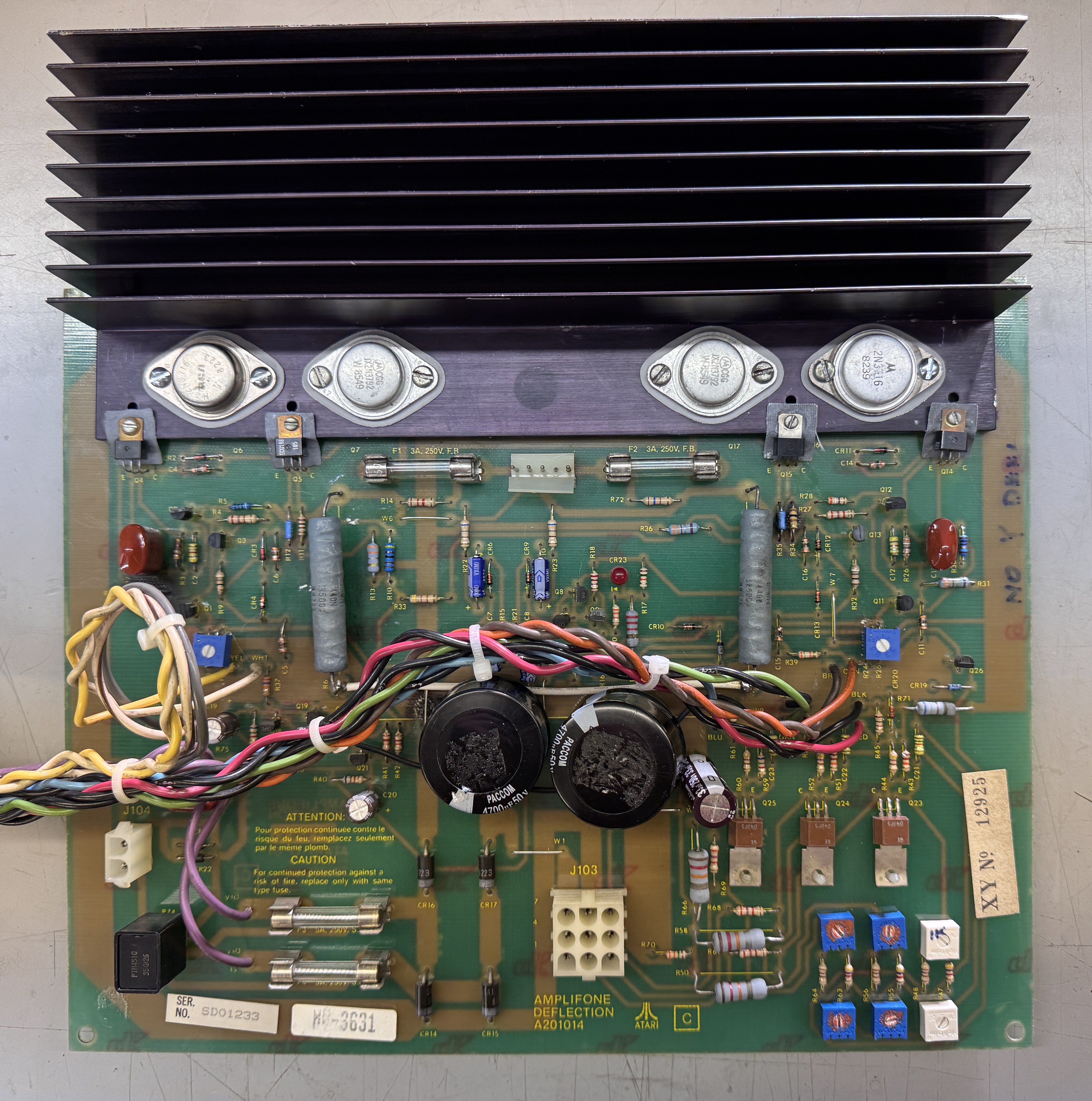 Had just got started on this one. Recapped this and the HV, cleaned up the power transistors and used silpads. Most of the X side was blown up. Thankfully it just blew fuse F4 vs. burning up.