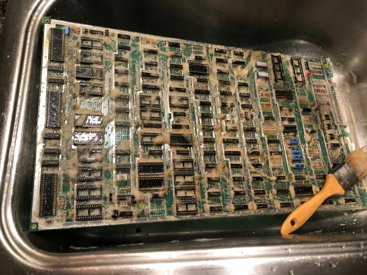 I will go back and do some maintenance. It has a few questionable sockets and the card edge repair needs to be reworked. I’m probably going to remove all of the solder side wiring and do those repairs on the parts side. I really do not like solder side repairs. If so – I’ll update with a pic of the repair.