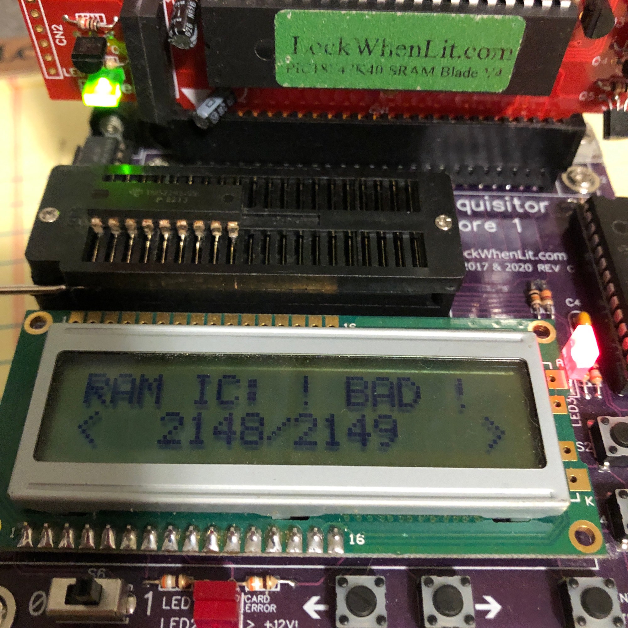 Once cleaned up I took a side detour – I had bent a leg in my tester and found that I could verify all the RAM in sequential, FF/00 and 00/FF mode – but not in random mode. Also – none of the ROM would verify. Finding the common denominator – AB10 showed floating. Found the offending broken pin and all RAM/ROM tested correctly.