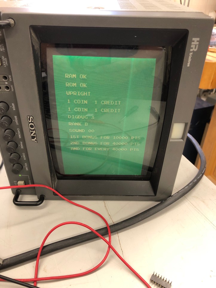 Last issue was self inflicted and something I didn’t know – even though I’ve fixed a lot of DigDug. The wire mod I removed looking for the lockup issue has a factory bulletin.