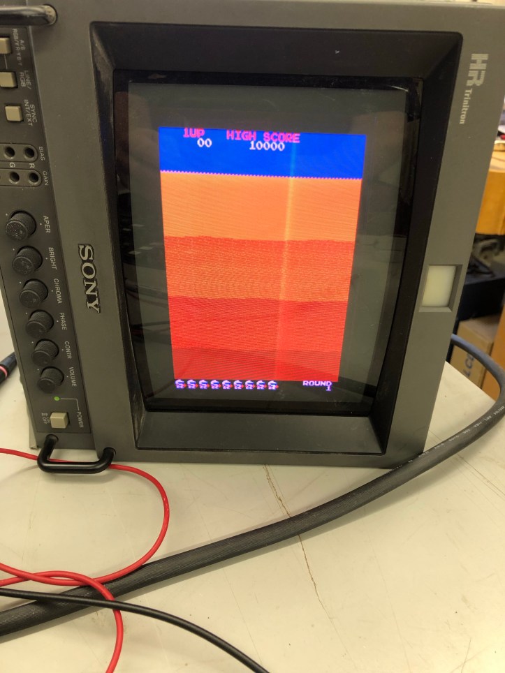 Booted the board the first time and got this. The sprites all looked like they had scan lines. Every other line was missing. Game played properly.