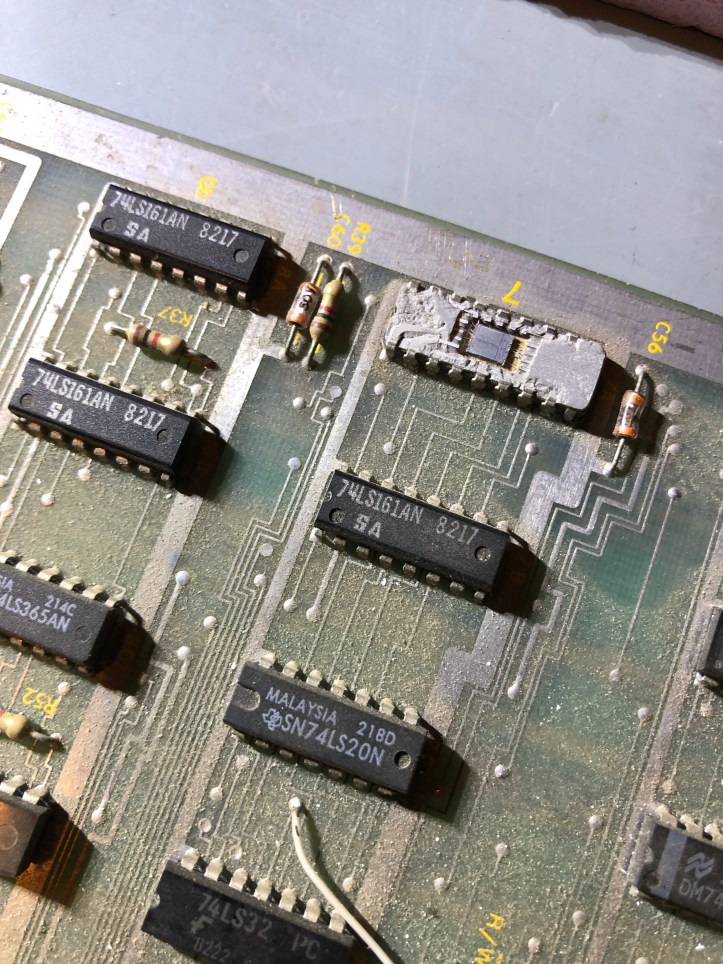 Another 20 minutes later the board crashed. I suspect this one has not been powered on for many years. Poking around – the LS32@ 5G/H failed.