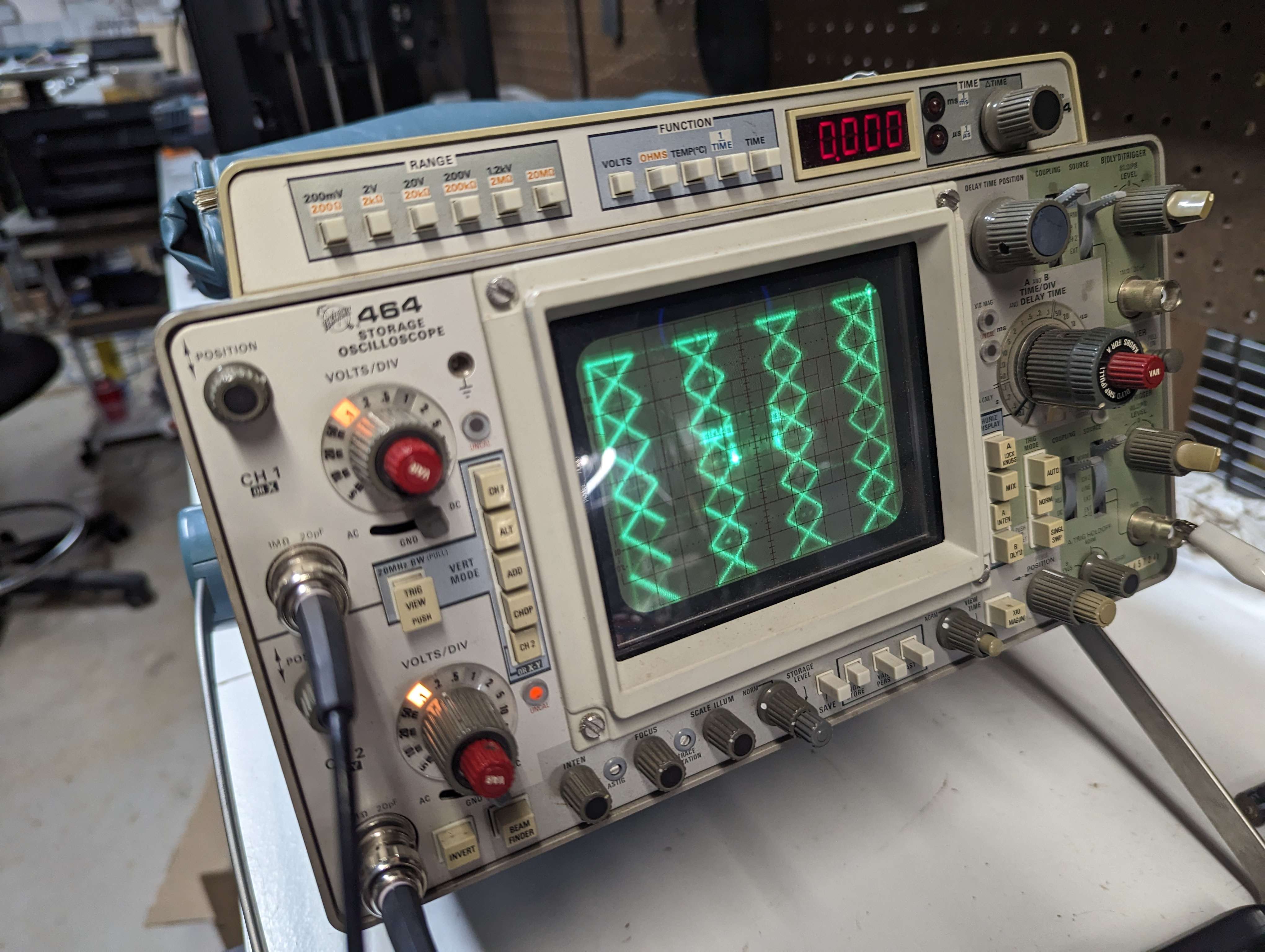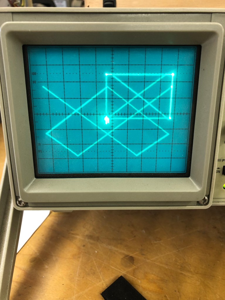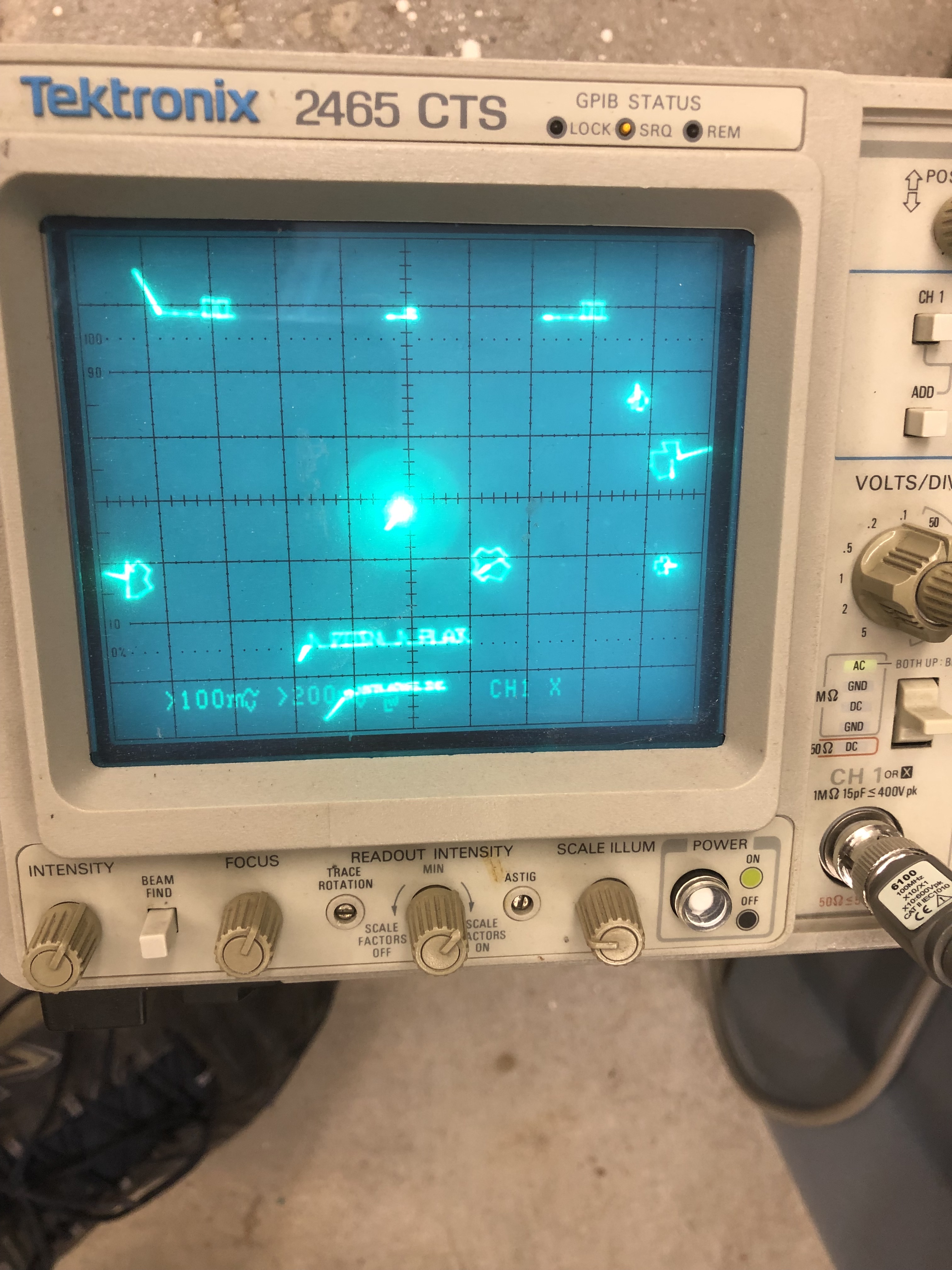 I grounded out L4 side of R90. Do this while in TEST mode and you get a diagonal line. From here I looked at the analog section working backwards with the scope.