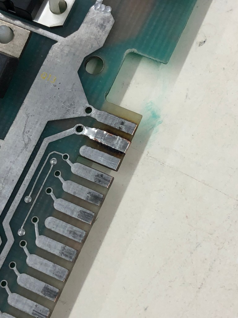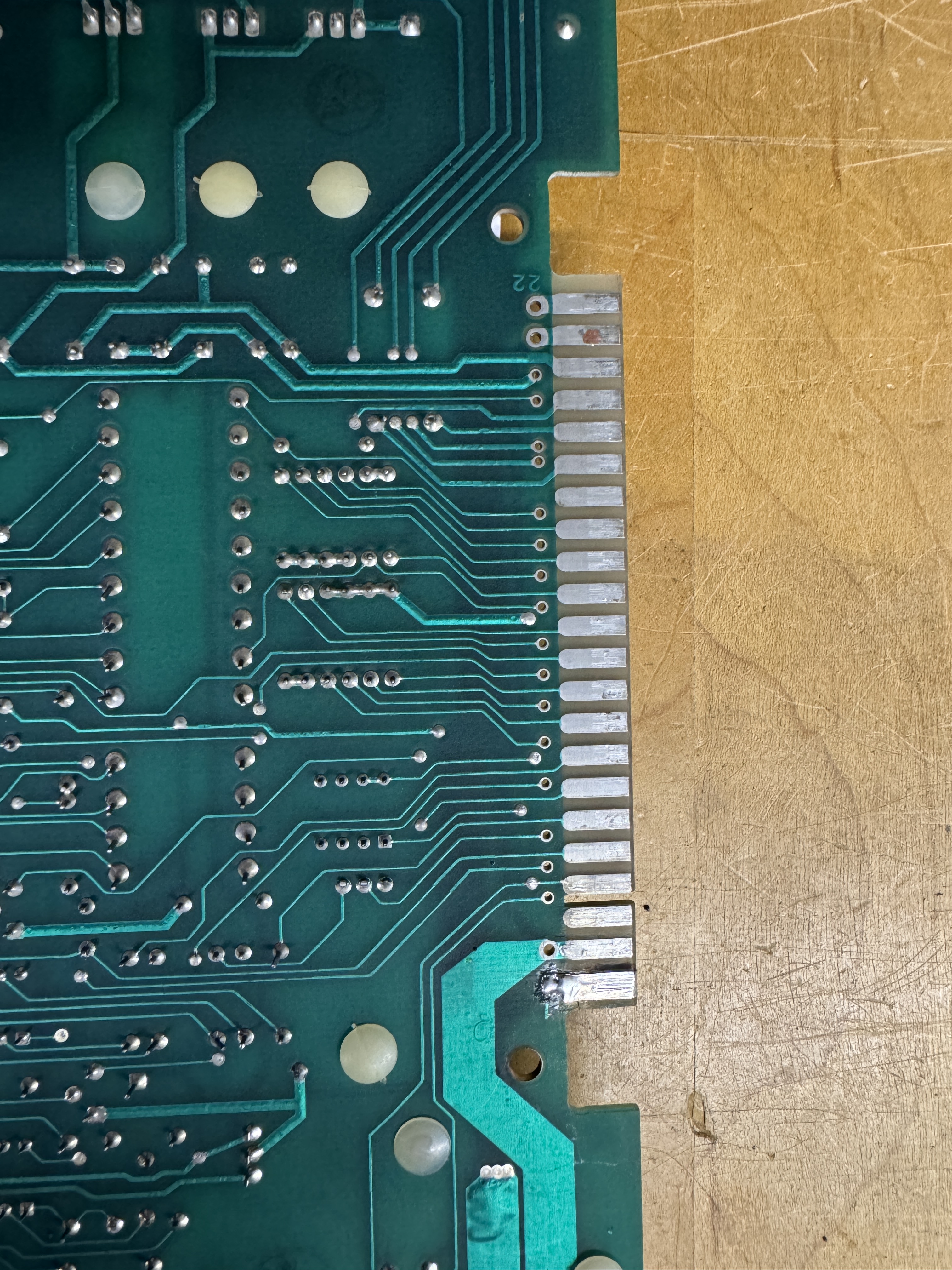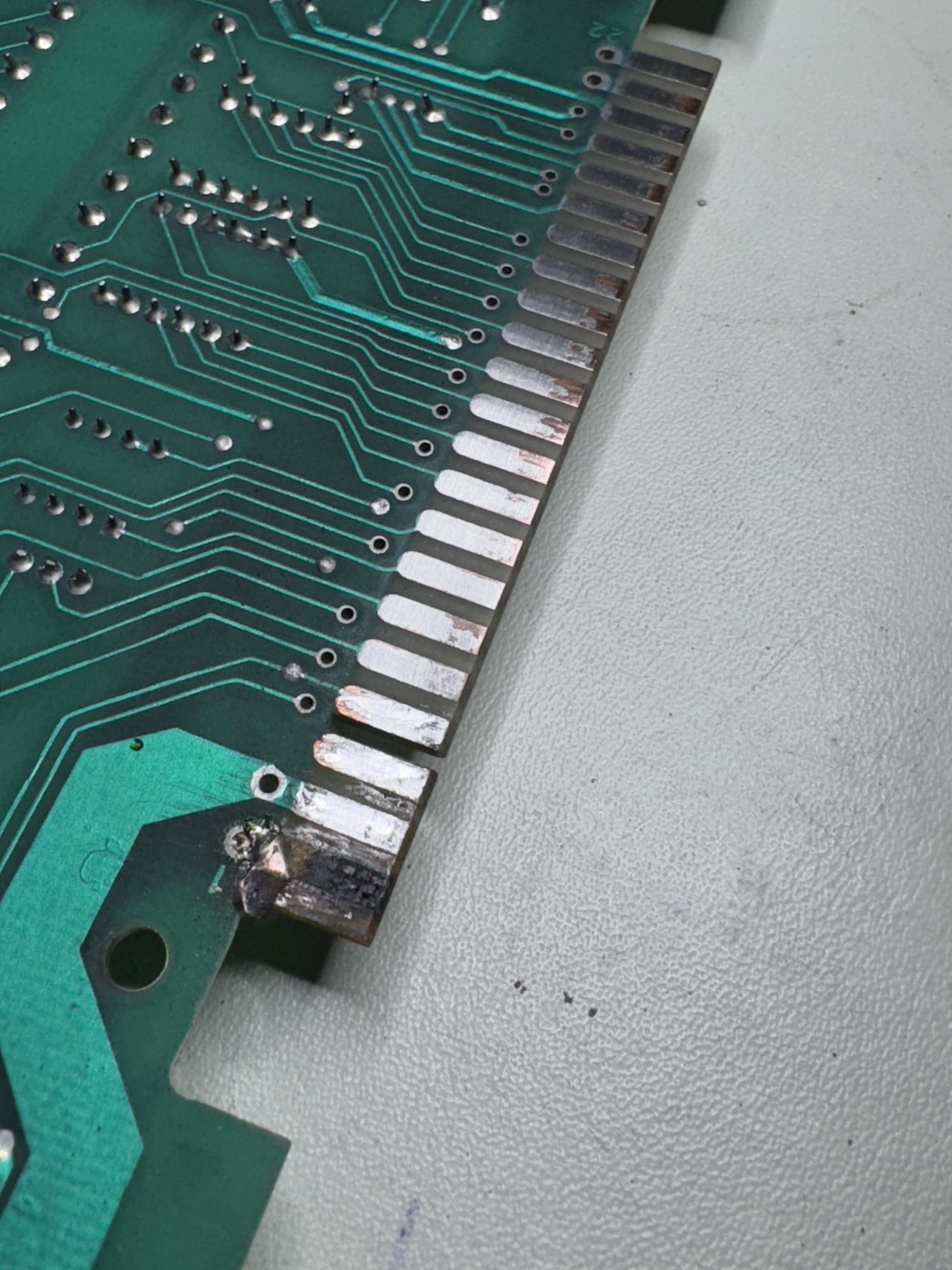 Repaired burned edge connector. Re-tinned. Results are same thickness as the other fingers.