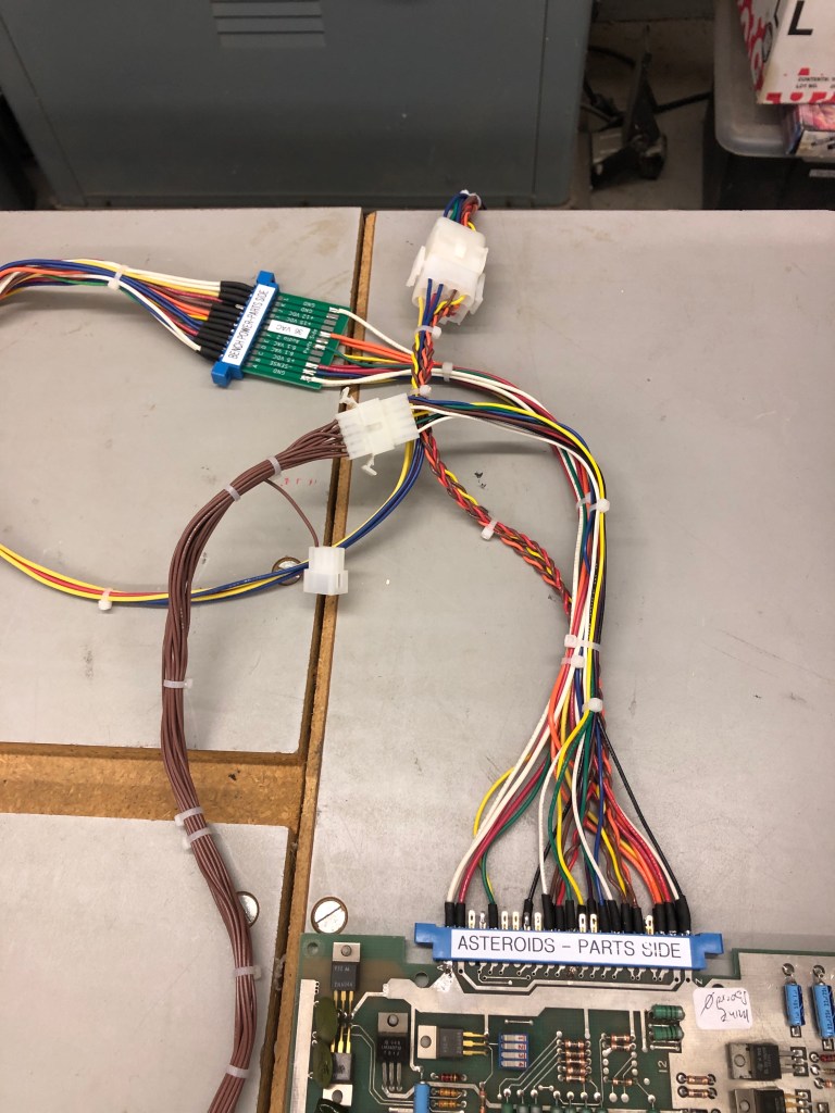 Prior to this board – I had been repairing Asteroids sitting behind my Asteroids cabinet on milk crates. Now that I have a bench harness system in place – I spent the time and built an Asteroids adapter for the bench.