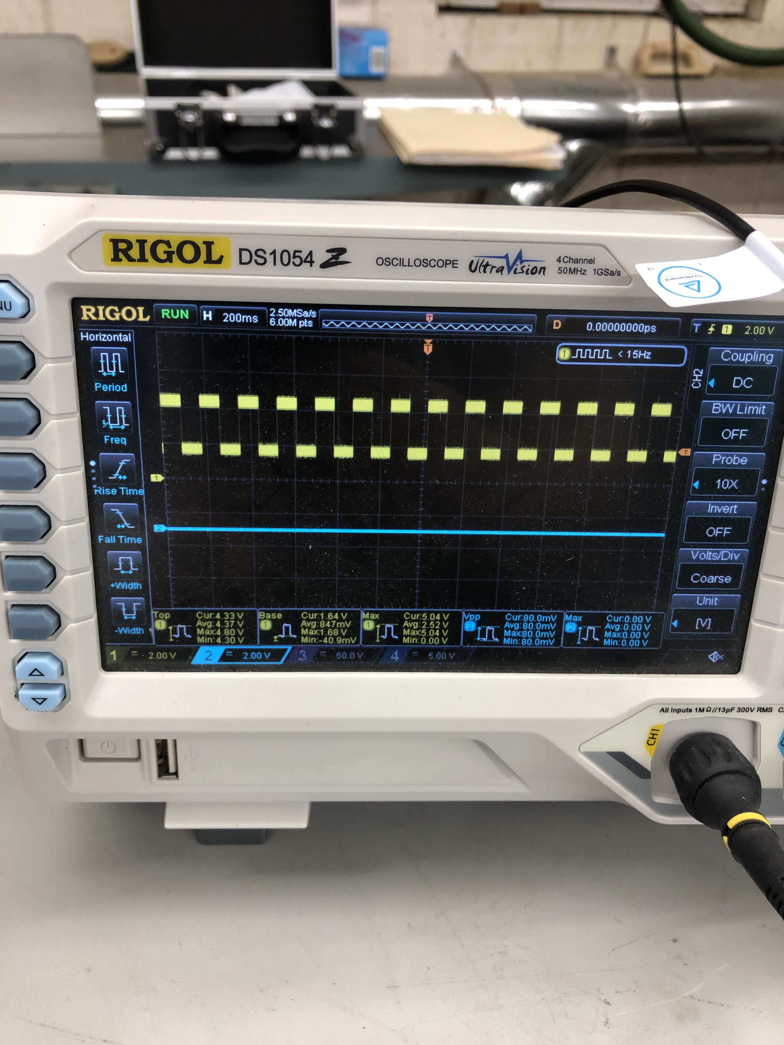 Here’s the reason. On the left – Pin3 with perfectly shaped signals – just never reaching 0 volts. Replaced LS08 on the right.