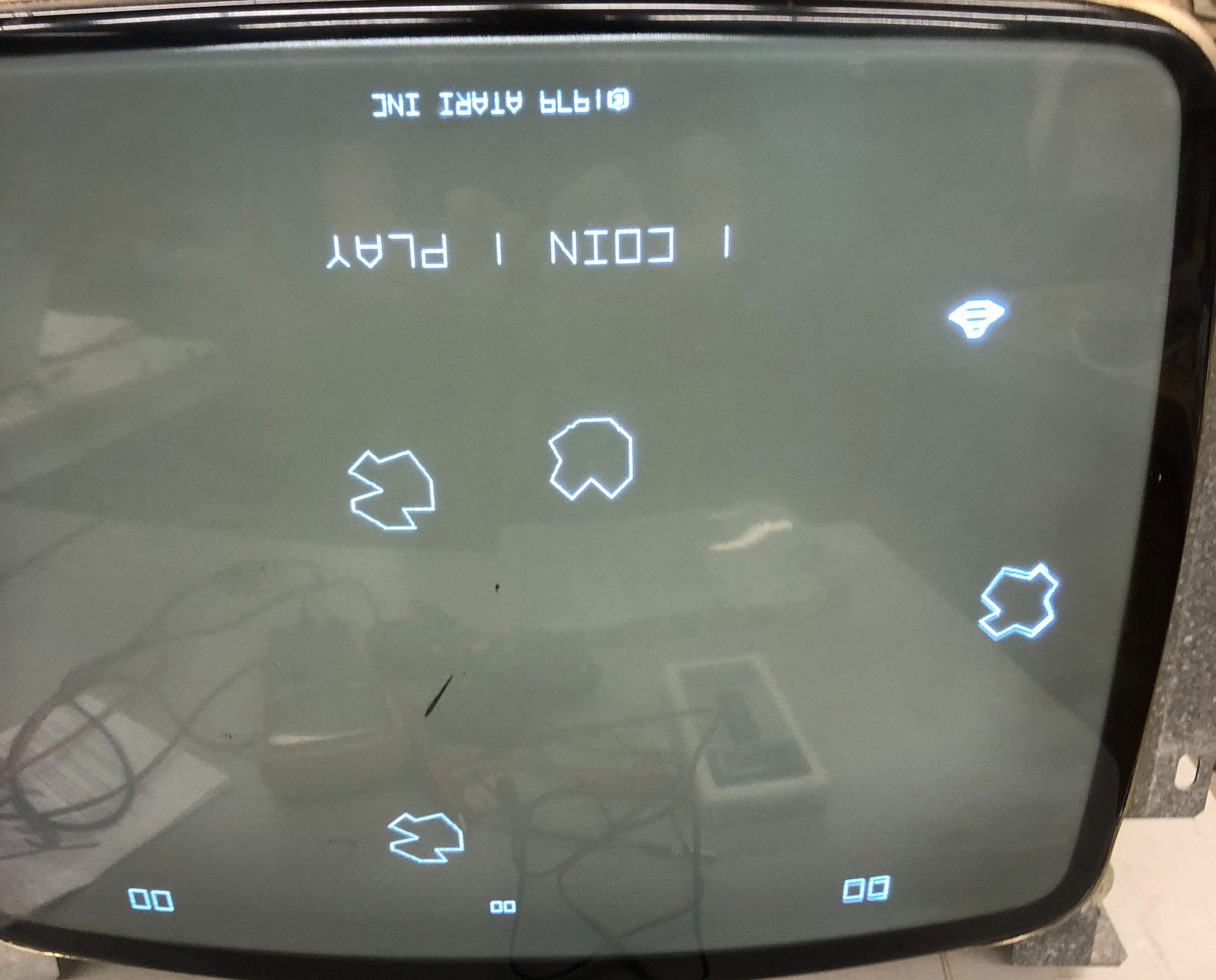 The Asteroids roll off the screen on the right and stretch back to the left side. At first it looked like an analog section issue. I replaced the 7915 and 7815 voltage regulators just to be sure. They were original and I’ve seen weird issues with them in the past. It was low probability and not the issue.