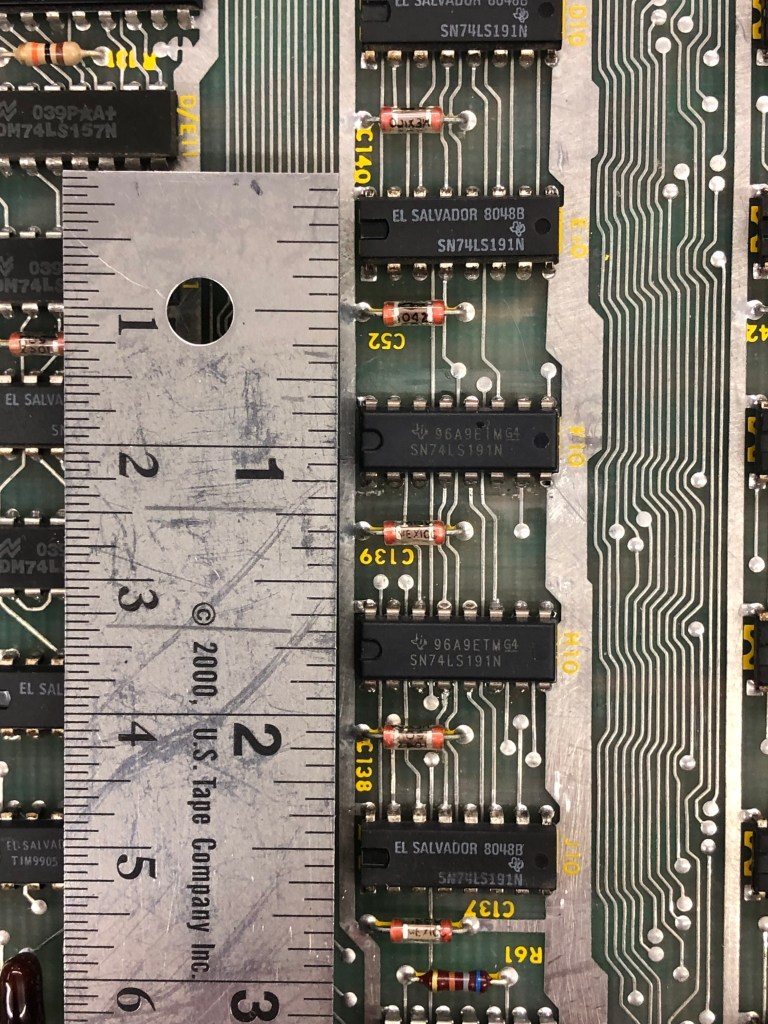 The last item on this board was something I didn’t notice until after it was running (and it was a cause of confusion). The watchdog circuit was broken. Easy to diagnose. I could use the diag switch and go from test grid to game – but it would just hang between modes. Had to hit reset on the PCB to get it to flip.. A good test to know if your watchdog will work or not!