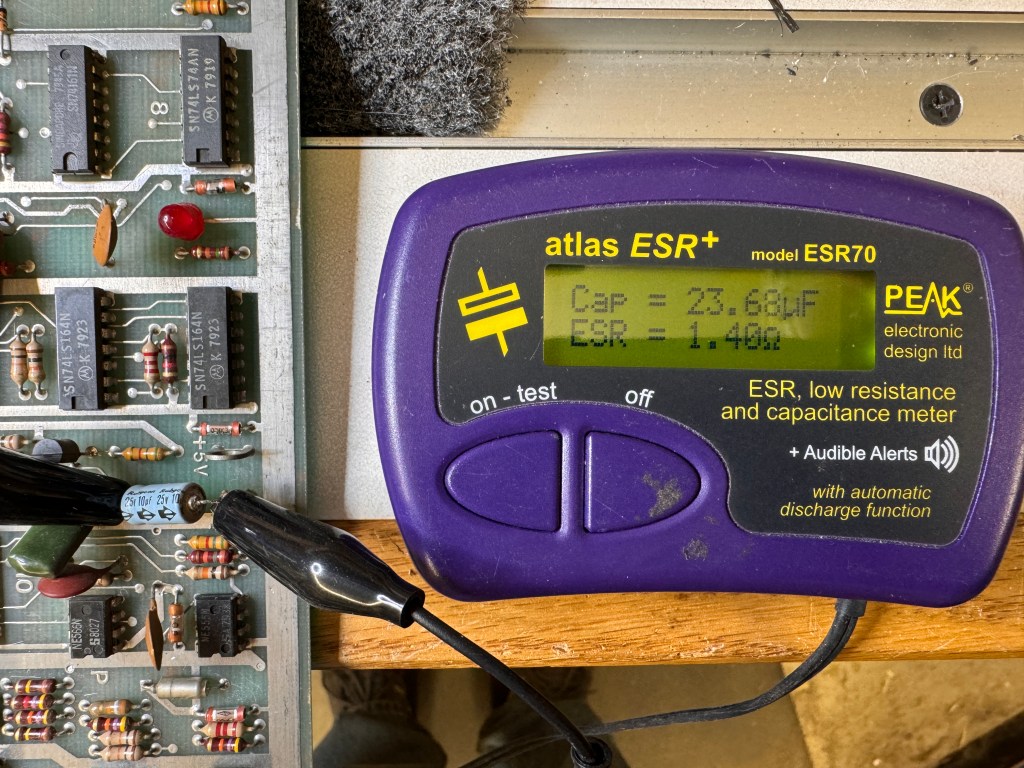 It tested way off in circuit, I lifted a leg and checked again – wow! I’ve never had a cap fail like this. off by 130%. Replace the cap and the saucers sound like saucers again!