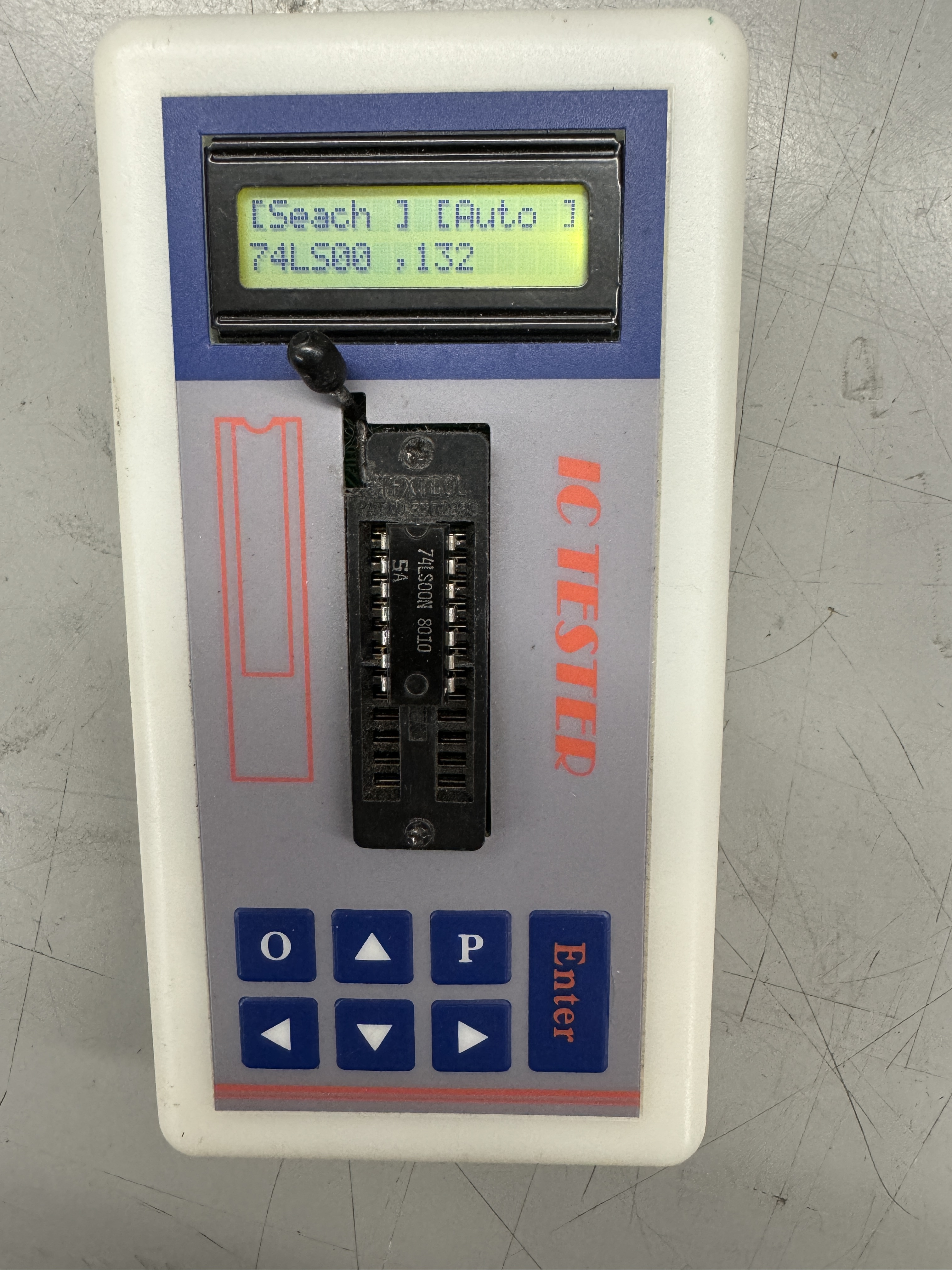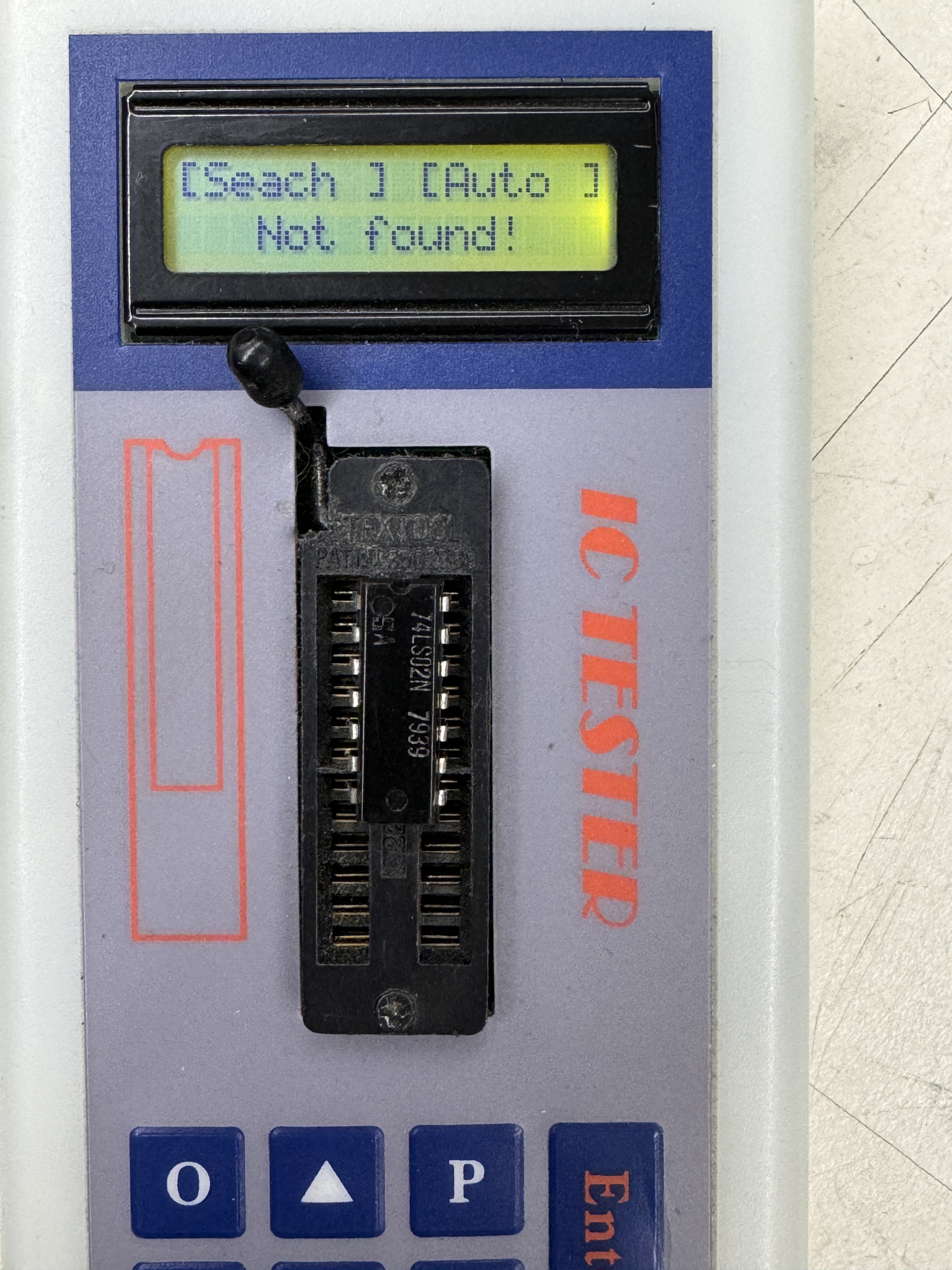 Pulled the chip and it fails in the tester! LS02@D6 – it was just a little old and slow it seems. As another test, I tried hitting the ‘Enter’ button on the cheap chip tester for a few minutes to see if it was pushing enough voltage/current through the LS02 to make it pass.. it didn’t. The Slice documentation stated that on most TTLs, if the propagation was above 40ns, start looking at replacing the chip. It was right!