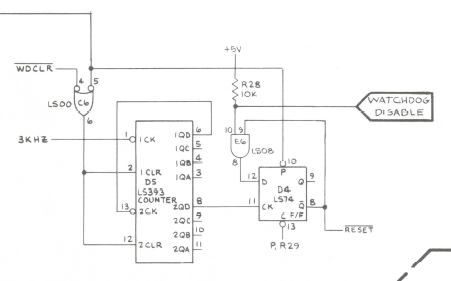 I could see WDCLR coming into the LS00@C6 and an output which seemed acceptable. I followed it all the way through however the RESET was still being triggered. Piggybacked the LS00@C6 – problem solved.
