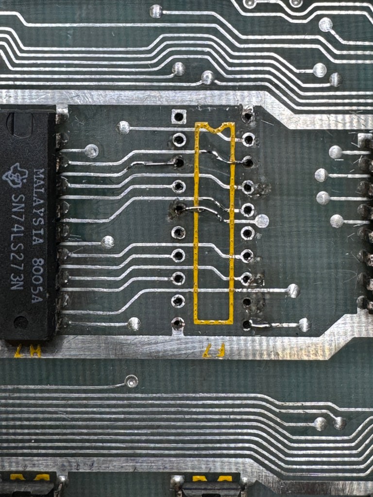 Working through these guys, I found that LS273@H7 – Pin 3 was floating. This was a previously socketed chip. Beeping out the connections – the pin was not connected to the trace.. removing the socket and pins…