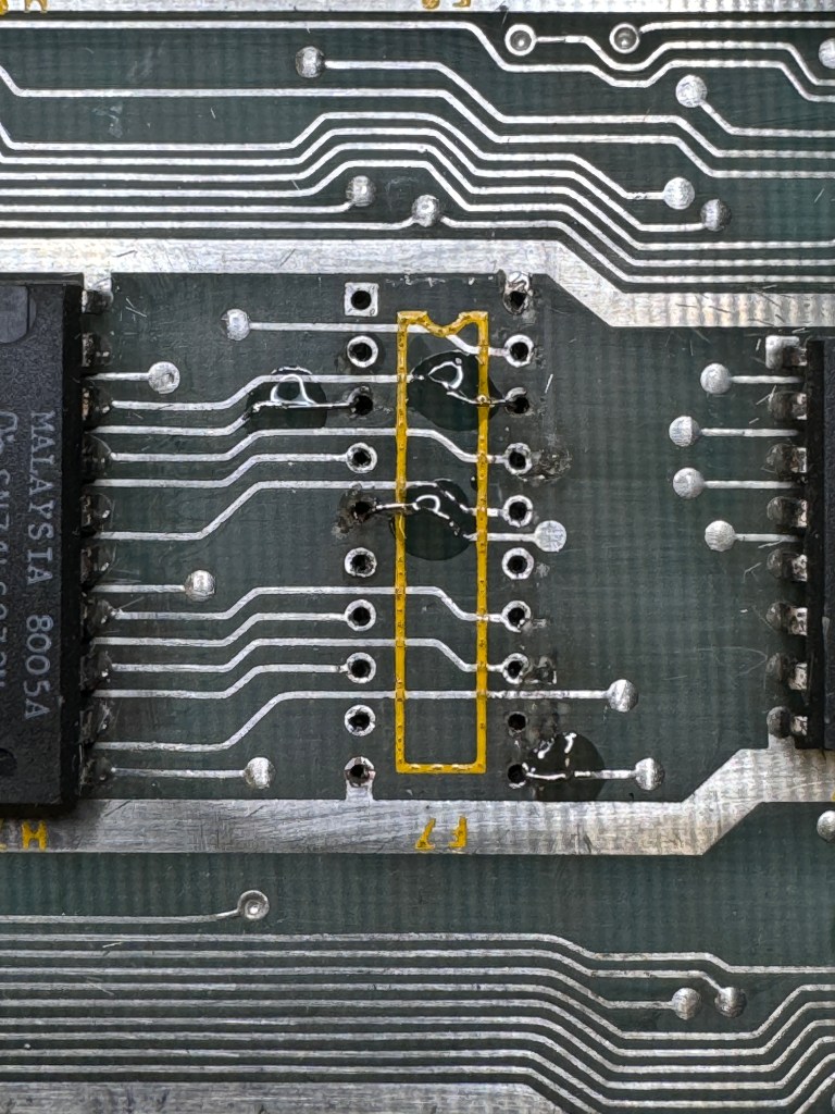 Once the game was running.. there was no thrust sound and the new 4016B at M10 was burning hot! Whoever had worked on the board prior had pulled and socketed the 4016B and left it off… with good reason. I decided to track down the lack of thrust sound first.