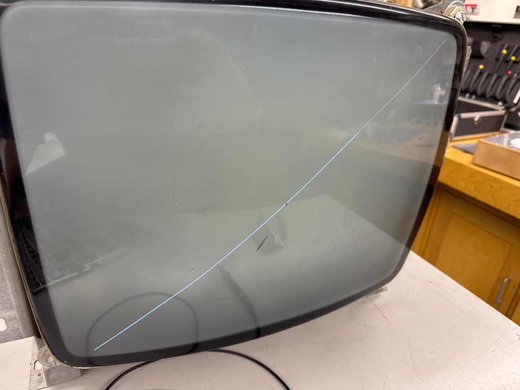 At this point I was able to determine that PROM @F8 was the bad one, I pulled and tested it. Read all FF’s in the reader.. I made a temporary ROM using an adapter.. Now my horizontal lines had some Y axis, but things were still messed up. In the diag screen I was now getting this..
