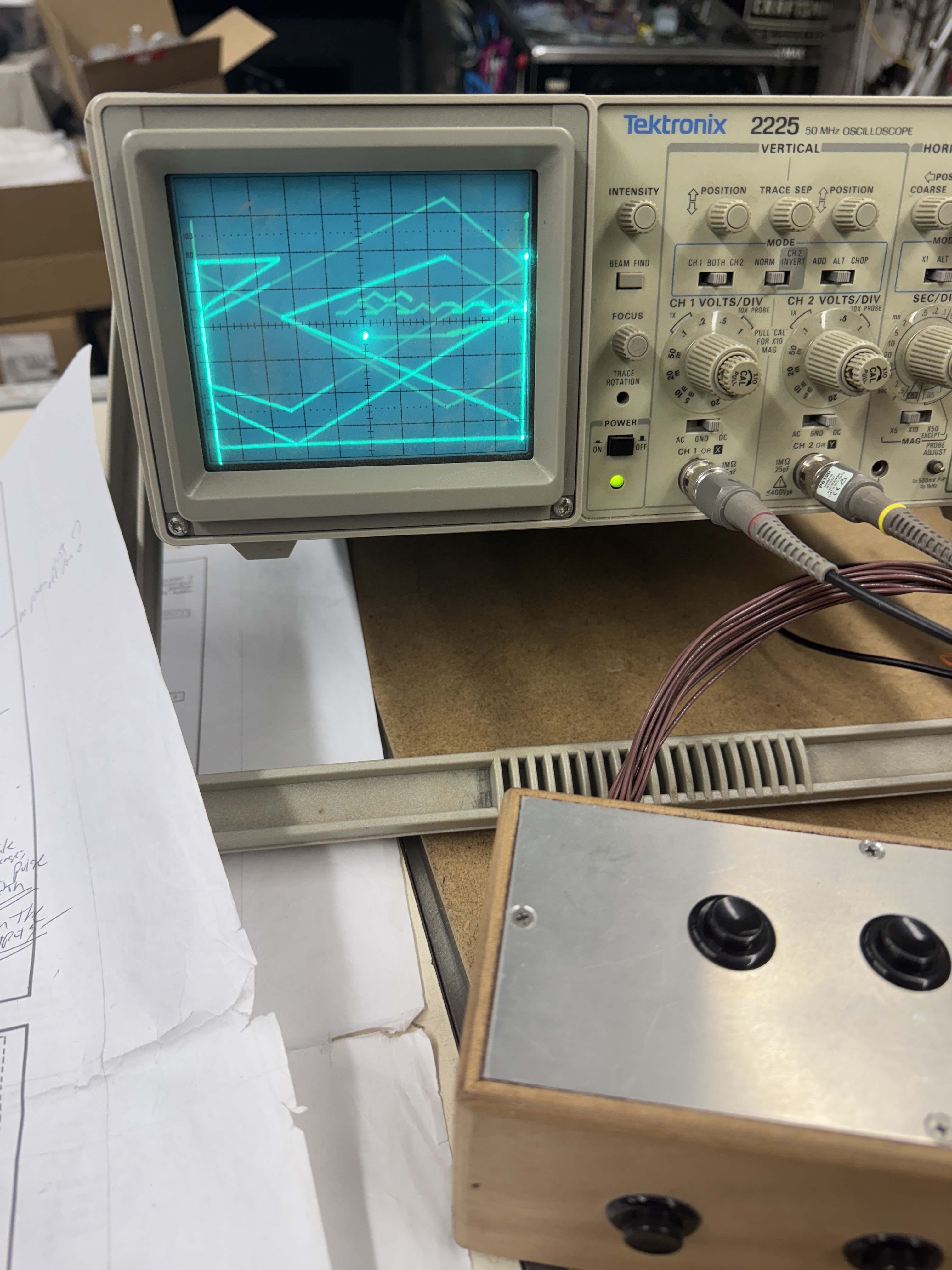 What I saw was what appeared to be a 1 bit (or so) as a zigzag line in the test screen. I initially looked at the analog section but nothing was initially jumping out at me. The other tricky part was the distortion was too small to really zoom into on the scope to help with diagnosis.