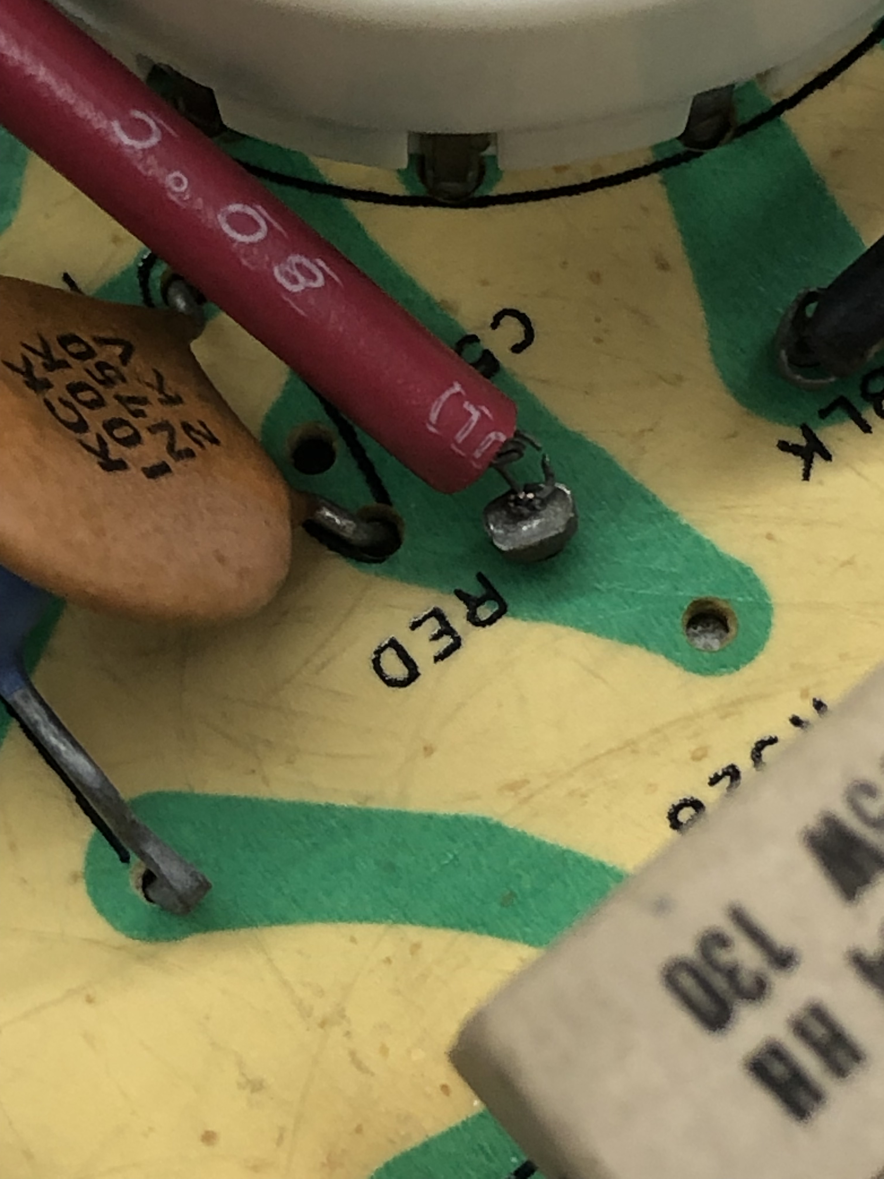 Here is a cap from the HV board… Same value, but the prior one was very different in size. Same on the neck board. Replaced the HV adjustment pot.
