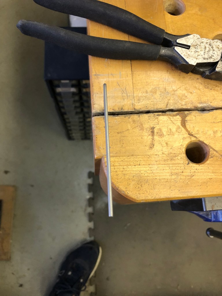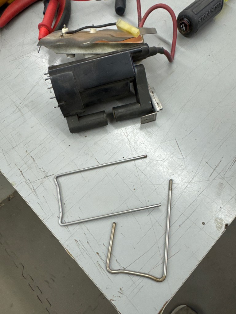 I’ve covered this before, I bend a replacement from stainless, cut to size and thread for 4-40 stainless bolts. Put it all back together..