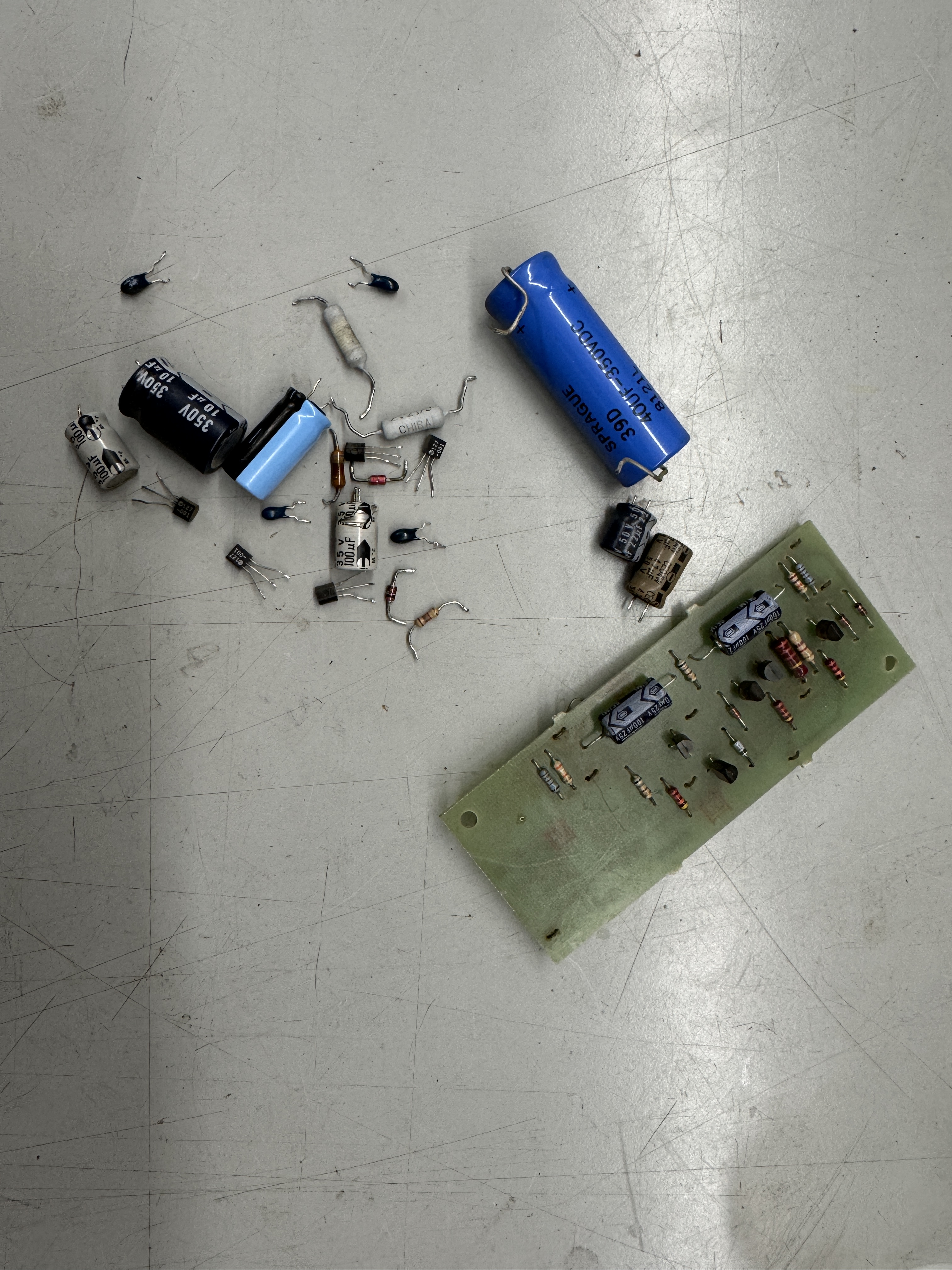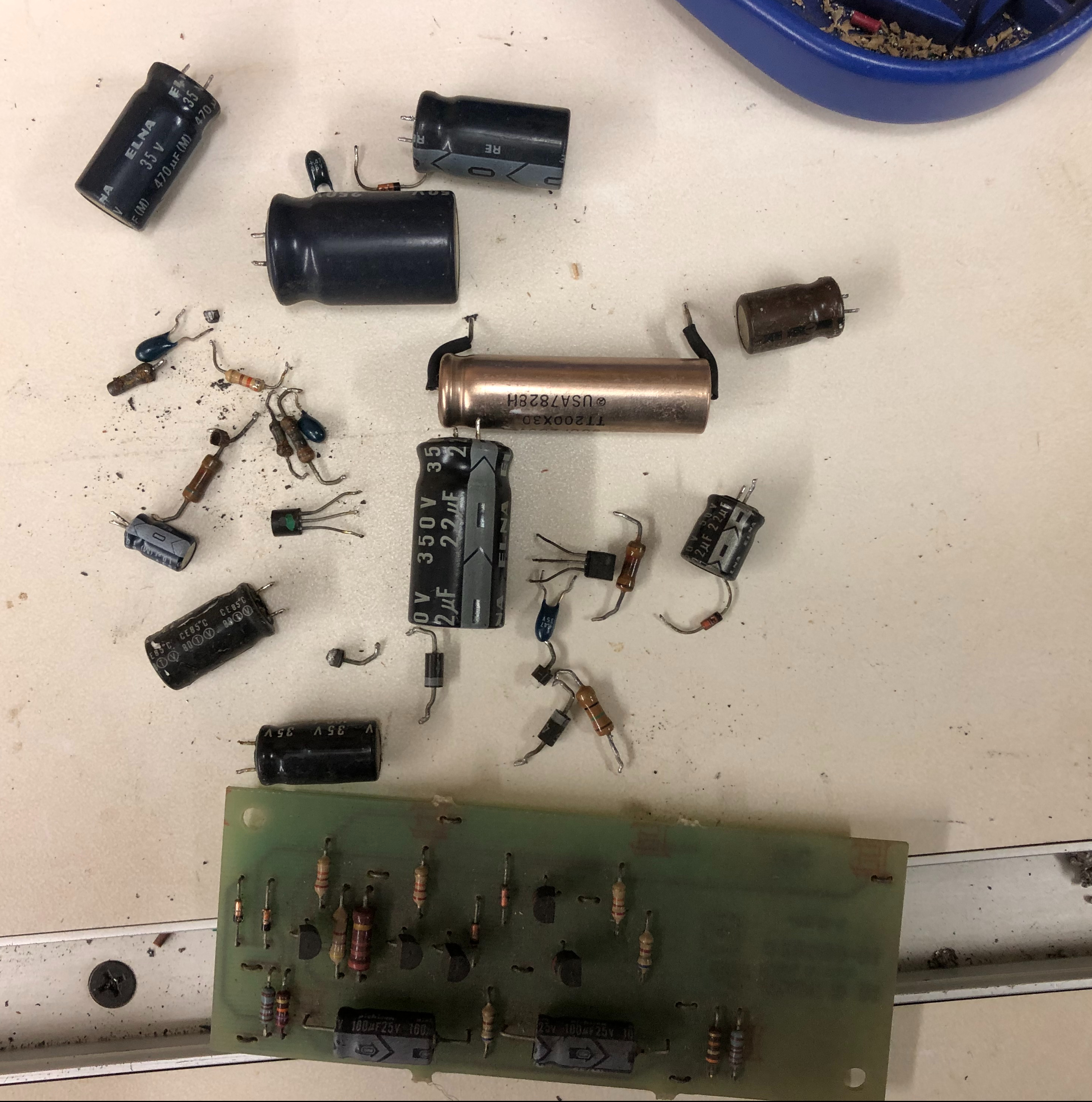 First step is to remove all the caps and components that I upgrade as part of a rebuild (a few diodes and transistors).. inspect .. etc..