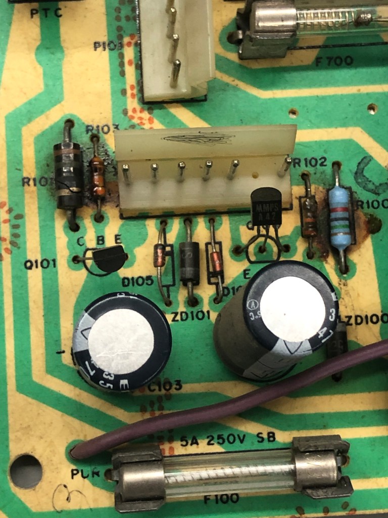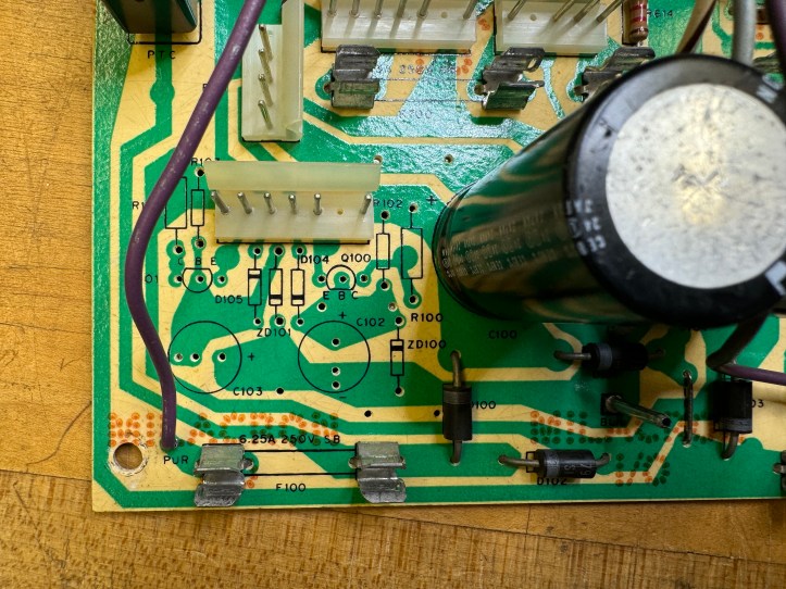 This one was pretty blown up. When I work on them, if they don’t have a LV6100 power supply, they get one. I also recap them.