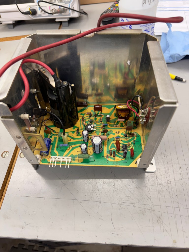 The HV unit had never been touched. It had a number of issues. Original (or very old caps) The HV adjustment pot was broken. R920 had failed open and there were a number of other burned up parts. When I have this much work to do on them – I remove the HV transformer and set it aside. It is easier that the whole thing flopping around on the bench as I test and replace components.