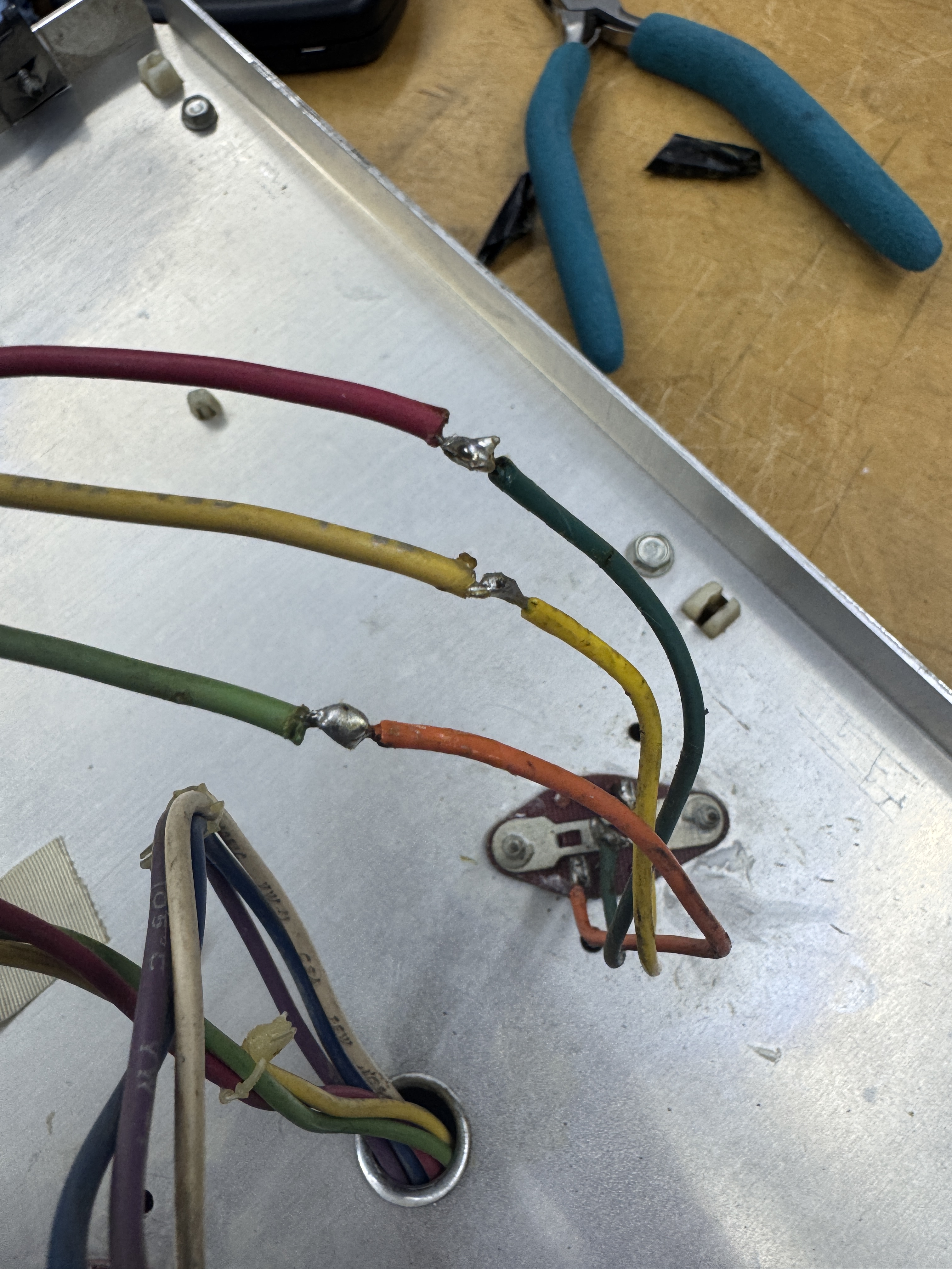 The neck board needed a little help. It was mostly dirty – but one of the ground wires was missing and I think 80% of them have the red wire hanging by a single strand.