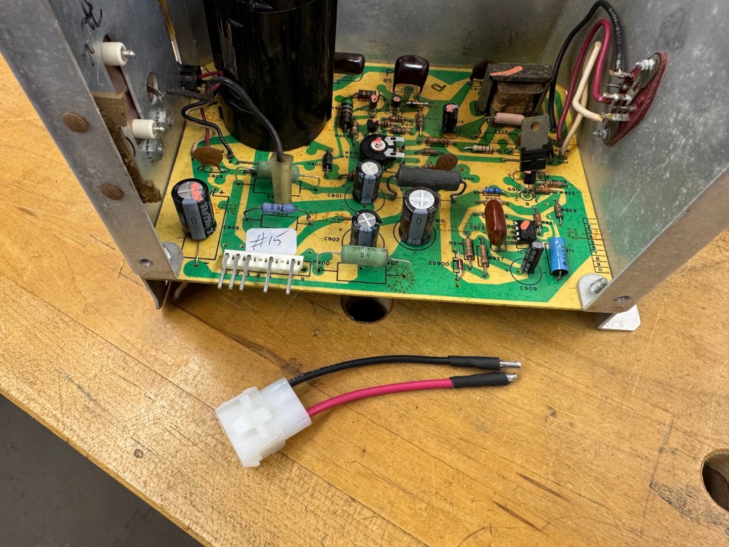 The HV power connector had its wire repaired by soldering it to the pin at some point.. It was hanging by 2 strands. Both got repinned properly. Fuses were missing and the ones that were there were incorrect.
