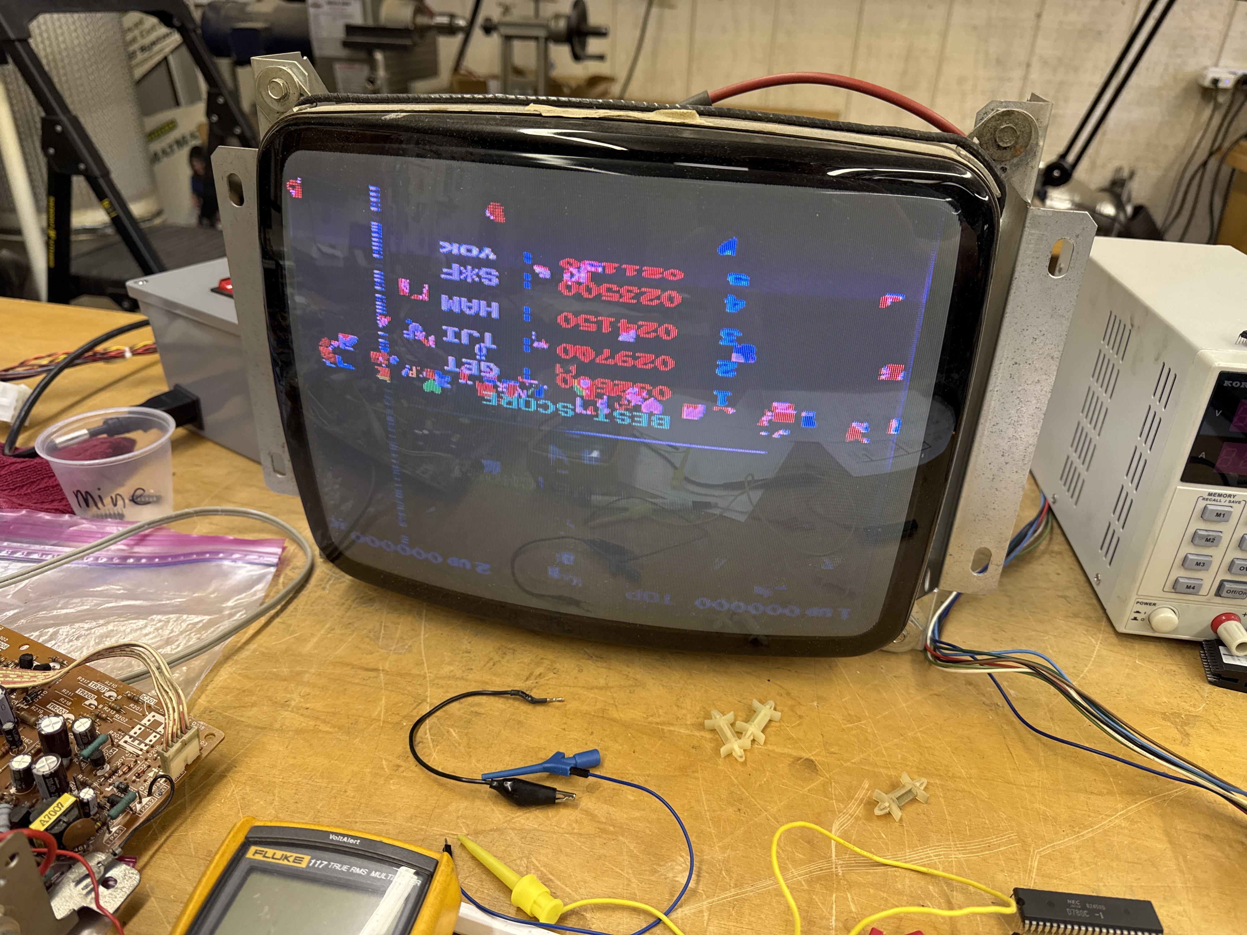Last issue is that after resting for a couple of days – first power up has jumbled graphics that self correct inside of a minute. Seems like a RAM issue – but finding it has been problematic. Freeze spray has not helped. I’m running the board though various power cycles to see if I can get the chip to complete failing.