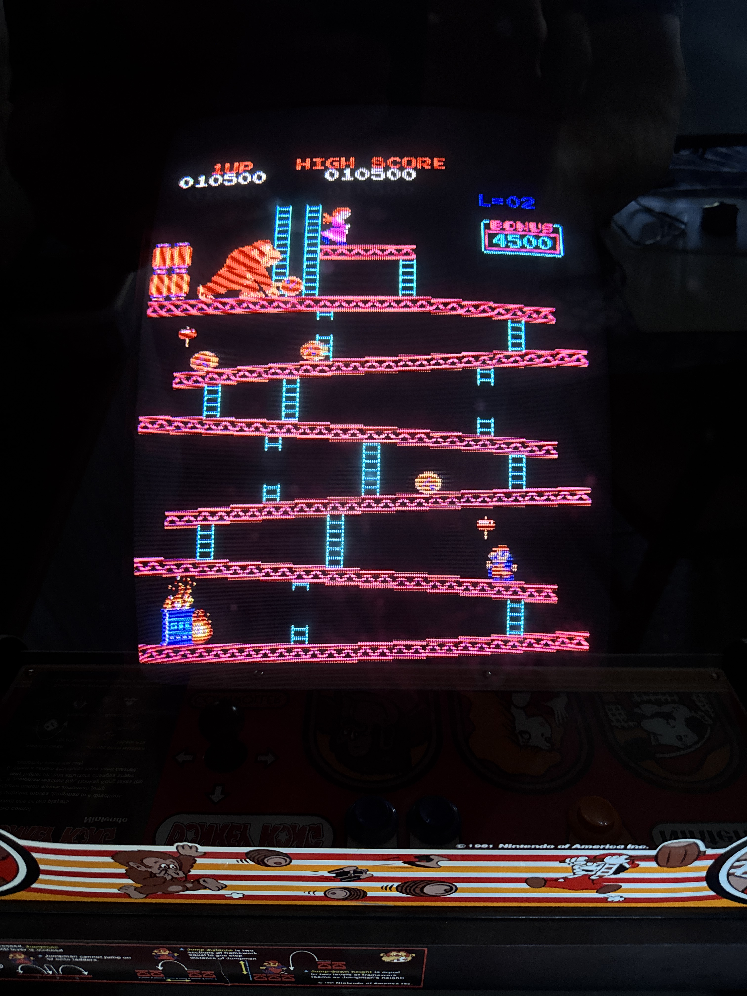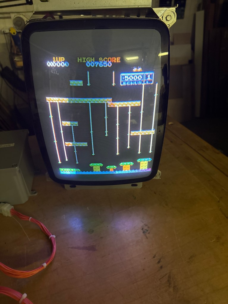 Notice the blue dots above the ladder.. This little line of video glitch fades away after a minute or two.. I really did not want to try to ‘figure this one out..’ – I did a little Google Fu and found a solution! Thanks to Kaizen @ Aussiearcade. Add a 22pf ceramic cap from pin18 to ground on LS373@3K and the issue is resolved. There were a couple of references to this particular glitch in the thread.
