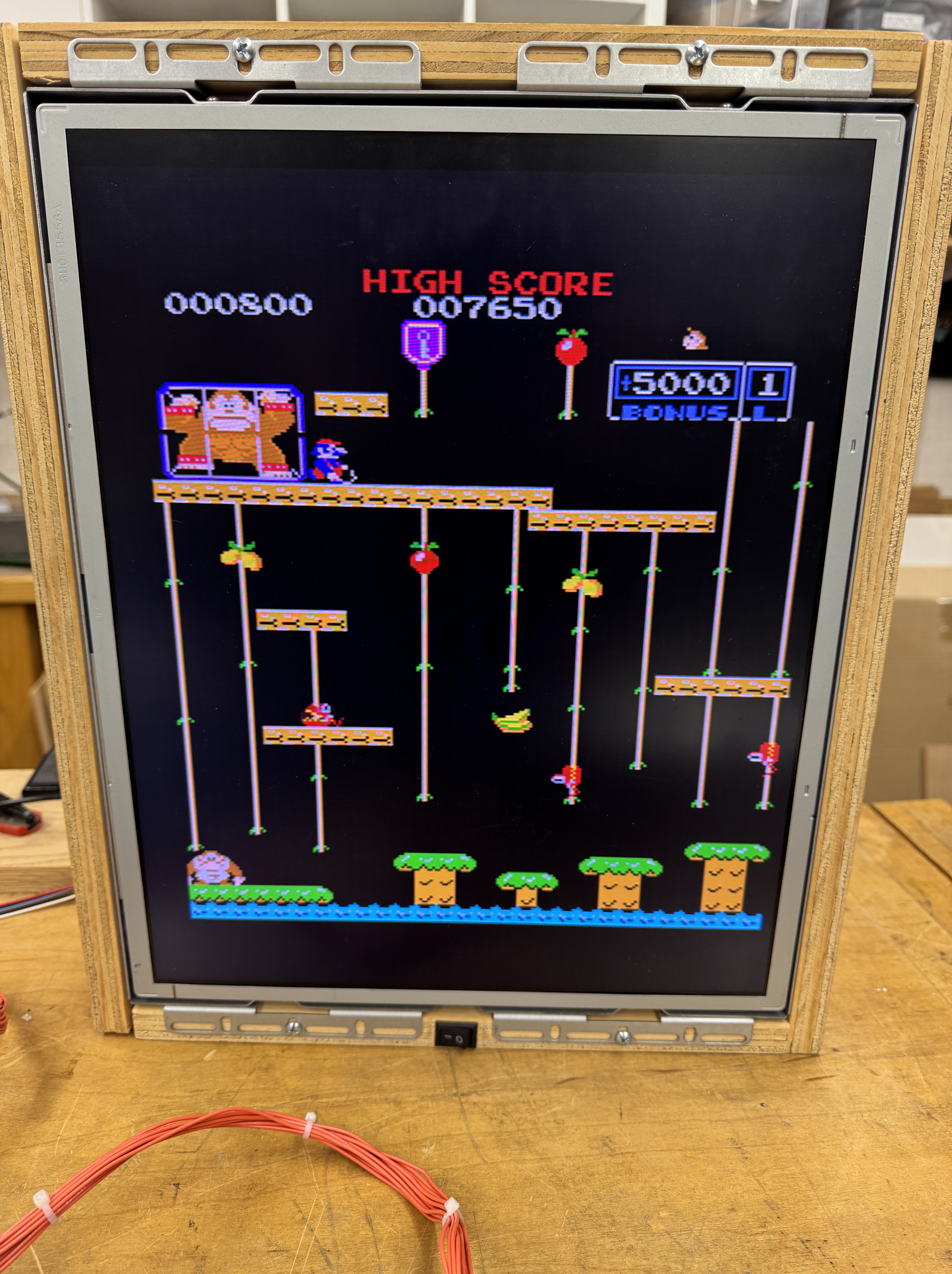 Here it is completed – it’s relatively simple. I needed to use the Nintendo color inverter board to get the video to display. Even then Popeye will not sync to my LCDs for some reason (which are just simpler to work with on the bench). I also have a dead Sanyo EZ for the bench to get going.. also on the list.