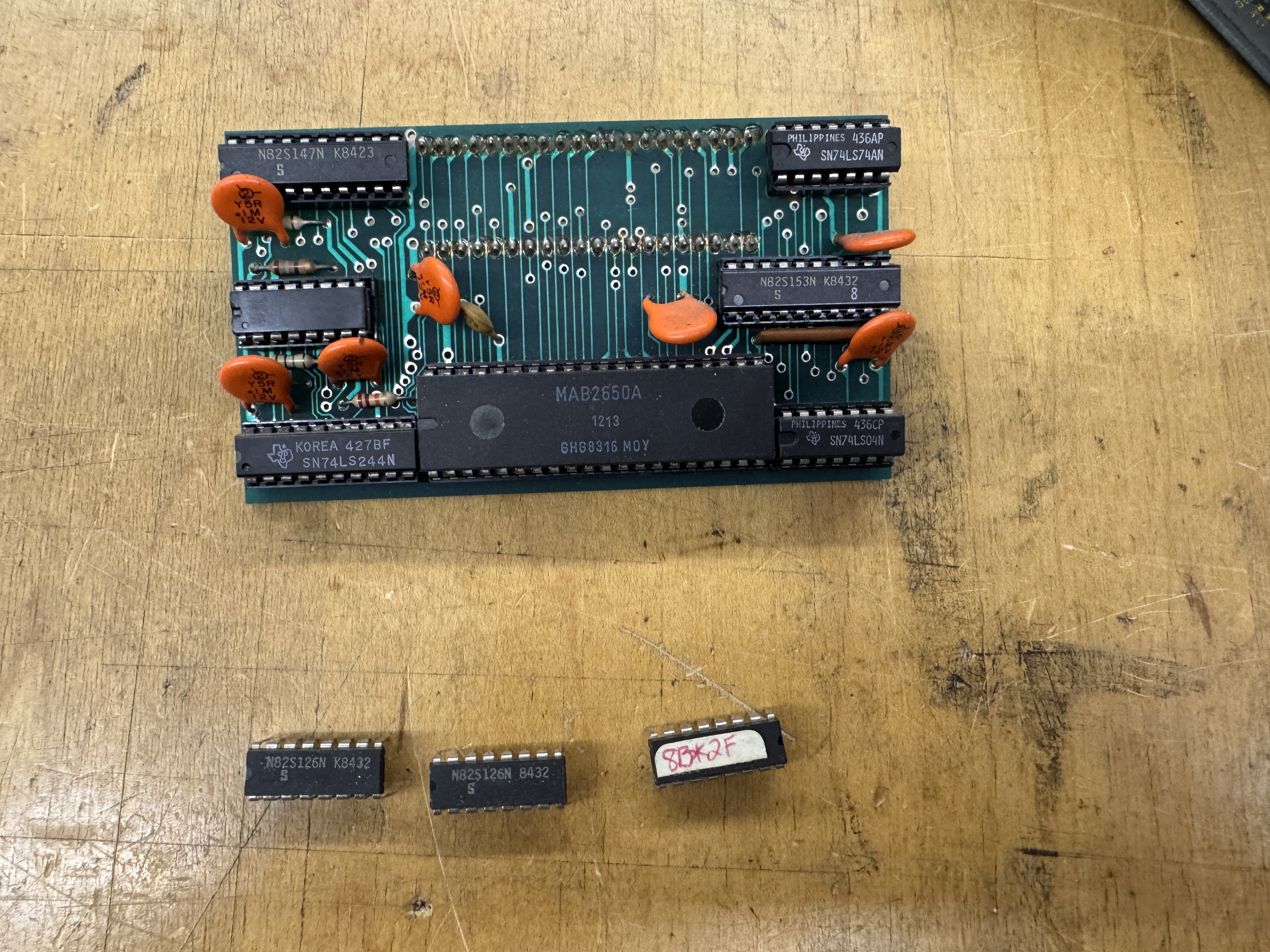 - Removed 54LS245@6A – this connects the CPU board to the Video board – It is ceramic so I figure it gets hot – no difference